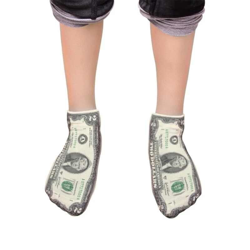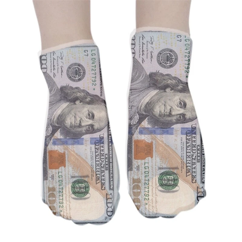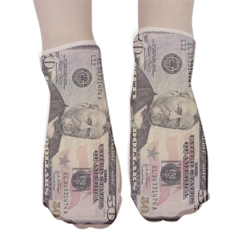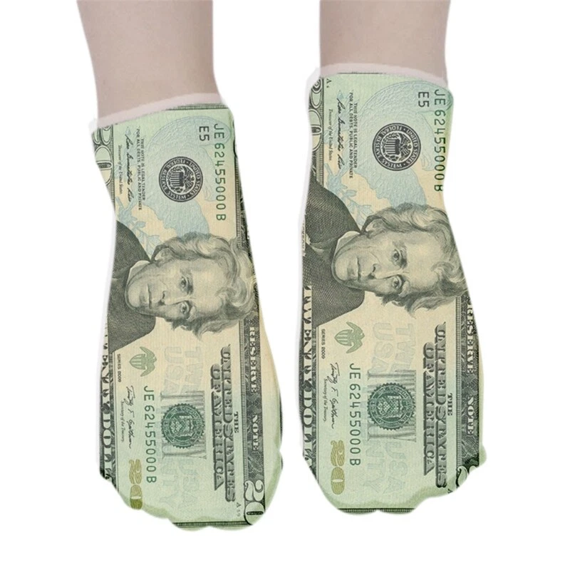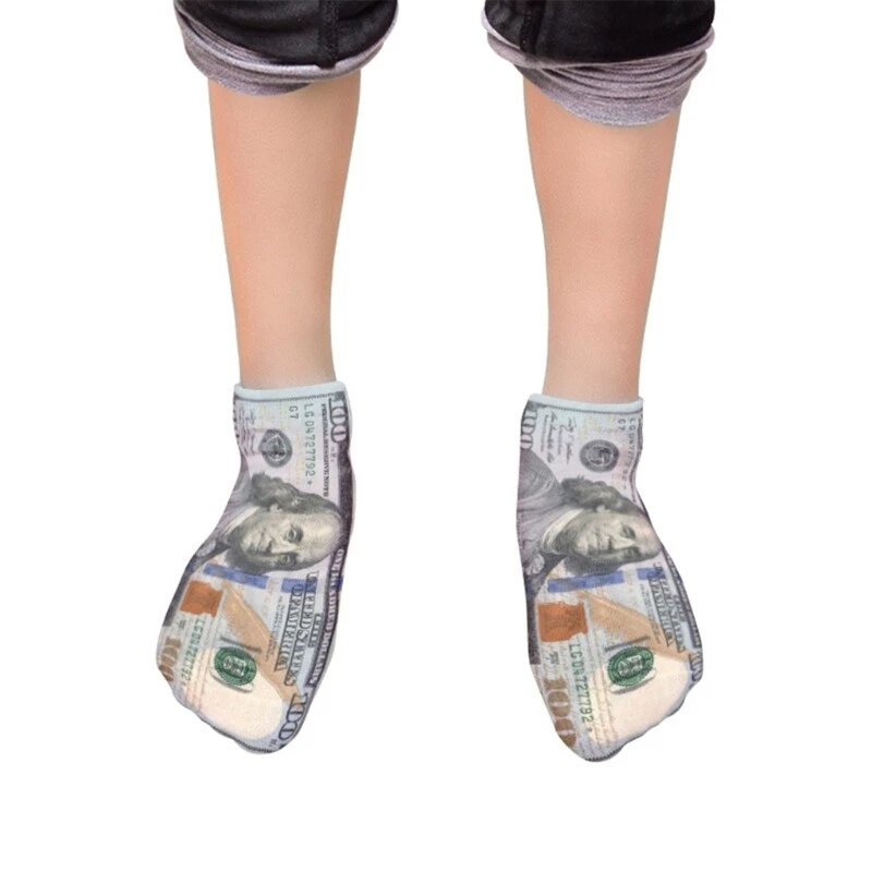 Funny Unisex Novelty 3D Printed Ankle Socks Dollar Bill Money Pattern Socks