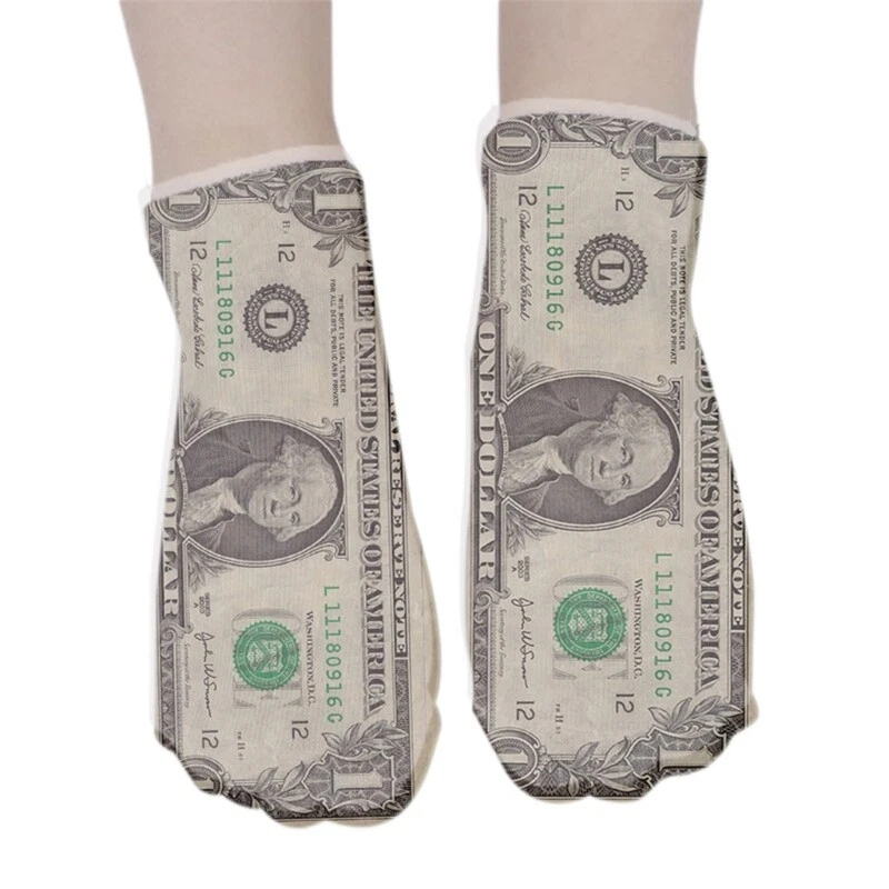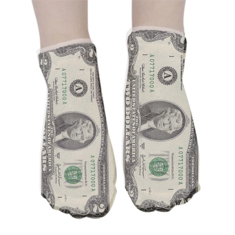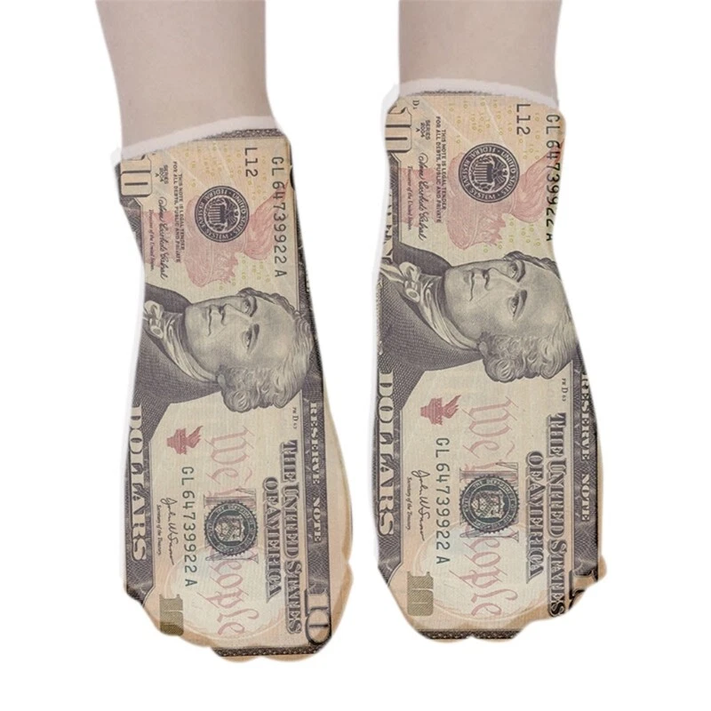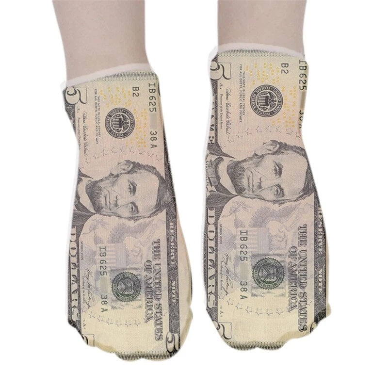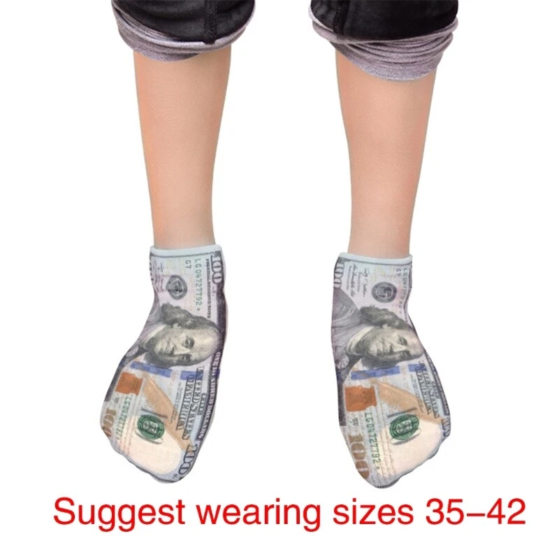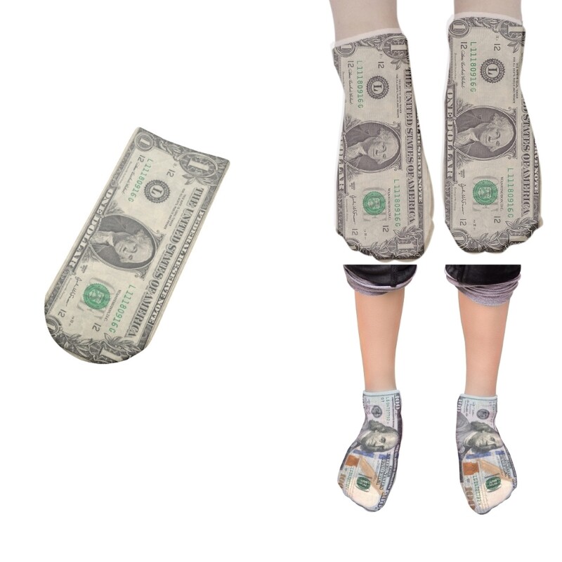 Funny Unisex Novelty 3D Printed Ankle Socks Dollar Bill Money Pattern Socks