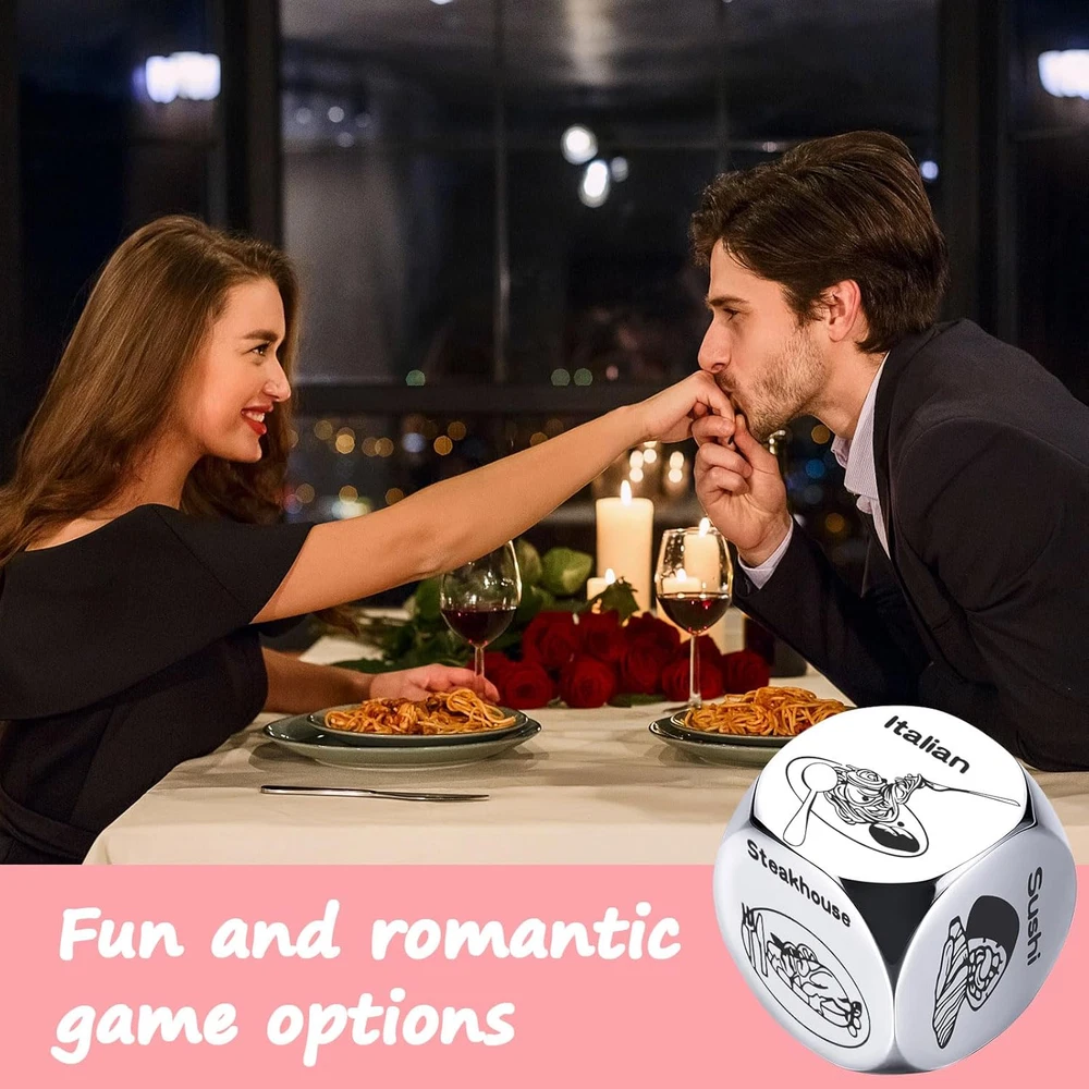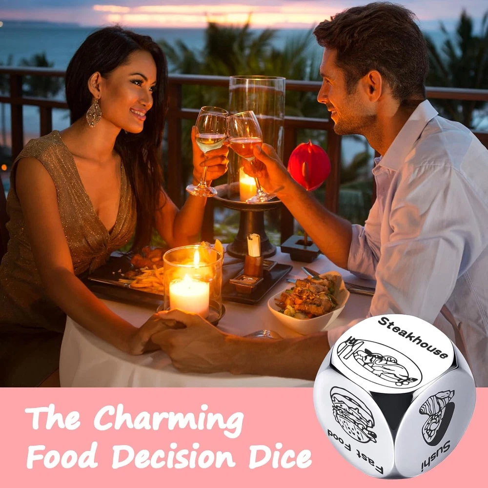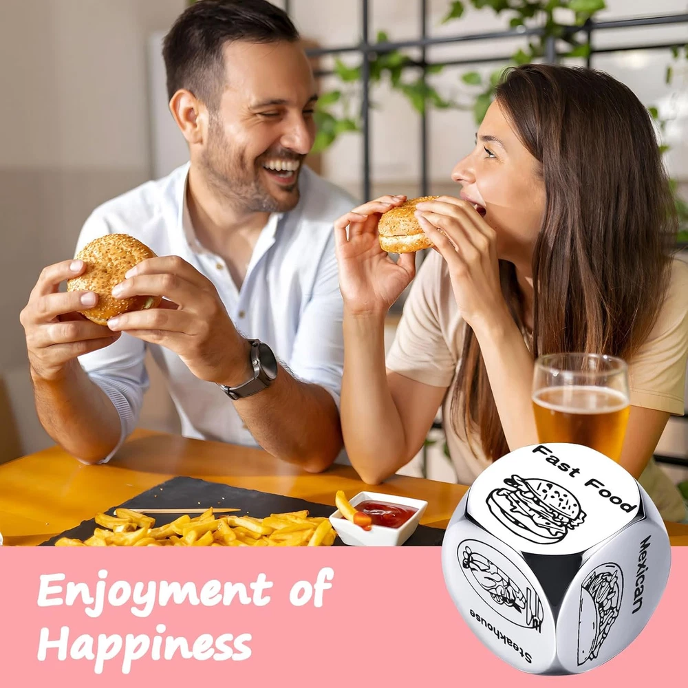 【The Charming Food Decision Dice: A Valentine's Day Delight】Searching for the perfect Valentine's Day gift? Our Food Decision Dice is just the thing! It combines romance, fun, and playfulness. Use it on date nights for a pleasant surprise, creating memories . It's not just a gift but a way to share love, bringing smiles to your loved one. This Valentine's Day, give the gift of fun and romance with this dice 【The Versatile Steel Food Decision Dice: Ideal for Any Occasion】Looking for a unique and fun gift idea for any occasion? Our Steel Food Decision Dice is the answer! Cleverly designed, it's a great stocking stuffer, Christmas gift, white elephant gift, or small gift for various people like men, couples, girlfriends, boyfriends, and more 【The Entertaining Food Decision Dice: Spicing Up Meal Choices】With our Food Decision Dice, making meal choices becomes highly entertaining. Just roll the dice to decide what to eat next. Whether for an anniversary, birthday, or just a fun night in, it'll bring laughter and joy to any gathering 【The Durable Steel Dice: A Practical and Long-Lasting Gift】Made of high-quality steel, this durable dice is built to last. It's a great gift idea for any time. Its compact size makes it easy to carry, suitable for family gatherings, housewarming parties, or office gifts 【The Unforgettable Steel Food Decision Dice: A Unique Gift Option】Why settle for boring gifts when you can give something cool, cute, and one-of-a-kind? Treat your loved ones with our Steel Food Decision Dice, the best way to make mealtime decisions exciting and every occasion memorable It is funny gifts for him her The size are 0.63inch*0.63inch*0.63inch.