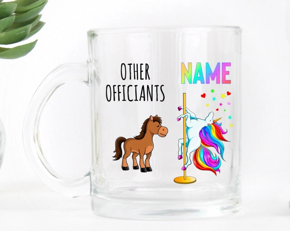 Funny Wedding Officiant Glass Mug Wedding Officiant Unicorn Gift Bridal Party Product Details.. This high quality 11oz. ceramic white mug has a premium hard coat that provides crisp and vibrant color reproduction sure to last for years. Perfect for all hot & cold beverages. The highest quality printing possible is used. It will never fade no matter how many times you wash it. Material: 100% Ceramic. Print both sides. Dishwasher and Microwave Safe. High Gloss + Premium White Finish. Printed in the U.S.A. Personalized & Custom. We support personalized and custom mug to add custom, when placing an order, you can add notes to the "order note" in shipping address section. Also you can contact us directly via message. Shipping Info. Ready to ship in 1 to 2 business days, All products are made-to-order and proudly printed in the United States. Shipped by USPS and DHL, You will receive your order in 5-7 days. Replace & Refund. All products are defective during shipping broken, chipped will be replaced free of charge. You are not satisfied with the product, we will refund 100% money to you. If any other issues arise, please do not hesitate to message, we would be more than happy to assist you.