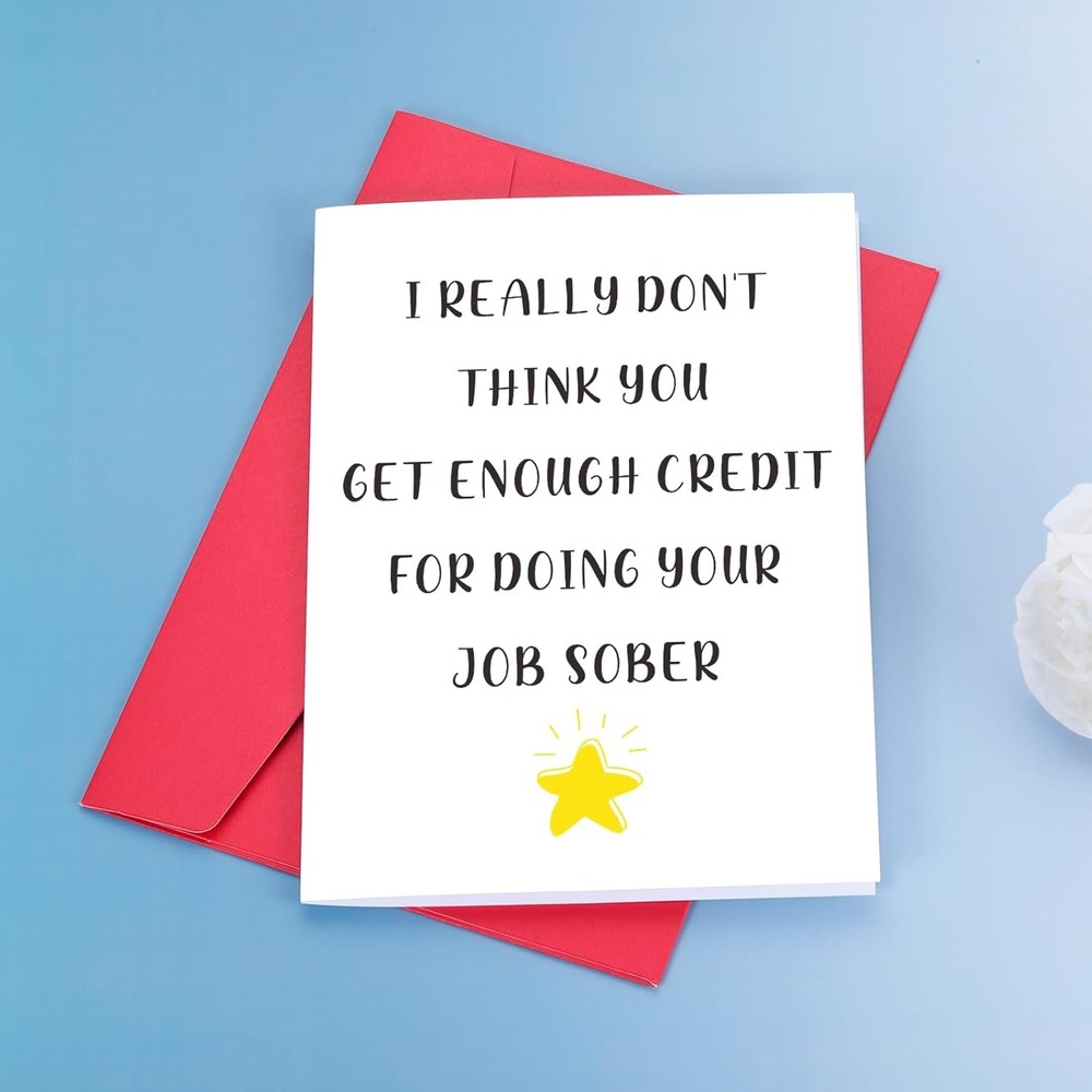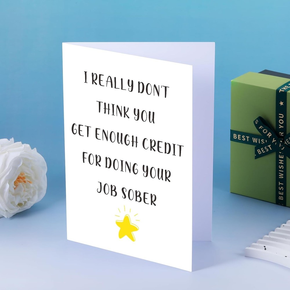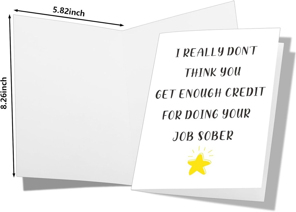 Boss day gifts for him or her: Boss day cards printed with funny words for your coworkers, whether it's your boss, boss lady, employee, leader, manager, director, mentor, supervisor, teammate, or special other. A fantastic choice for anyone looking to add a touch of humor and warmth to boss day. Boss gift for women; happy boss day card; boss's day gift for her; funny birthday cards for women; retirement card for woman; boss gifts for men; birthday gift for coworker female; going away gift for boss. Greeting cards for boss female and male: Get this for your dear coworker on his/her birthday, boss day, work anniversary, going away day, retirement, or leaving day when you want something different from the ordinary. The inside of the card leaves the right amount of space for a personal message, allowing you to write a heartfelt message along with humor. Funny gifts for coworkers; boss birthday gifts for women; world best boss; boss day card from group; boss gifts for men office; hilarious birthday gifts. Work anniversary cards for women and men: Few words with lots of meaning. A great choice as a work anniversary gift to tell the dear coworker how great she/he is. Boss lady gifts for women; best boss ever gifts; gifts for employees from the boss; going away gift for boss; cute birthday gifts for women; funny retirement gifts for women; boss gifts for women office; funny happy birthday card; cool unusual gifts; gifts for your boss; gift for a male coworker. The sweetest little gift to put a huge smile on someone's face. Funny retirement gifts for boss coworkers: Unique gifts for bosses or coworkers for retiring positions. It can be used to express your dismay at losing this coworker and also let the coworker know that you are still wishing her/him well. Coworker birthday gifts for women; happy birthday card funny; mentor gifts for women; birthday gifts for boss female; mentor gifts for men; hilarious birthday cards; boss' day gift ideas. A funny addition to presents that creates a warm impression before retirement. Boss birthday gifts with quality cardstock: The greeting cards are of quality, with crisp printing and a glossy finish that adds a touch of class. Birthday gifts for someone who has the right sense of humor. Boss appreciation gift for women; boss gift for office; boss gift for women; funny birthday cards for men; cool gifts for bosses; work anniversary gifts; funny coworker gifts. A way to show your appreciation, greeting, or respect. Card size: 8.26 x 5.51 x 0.04 inches.