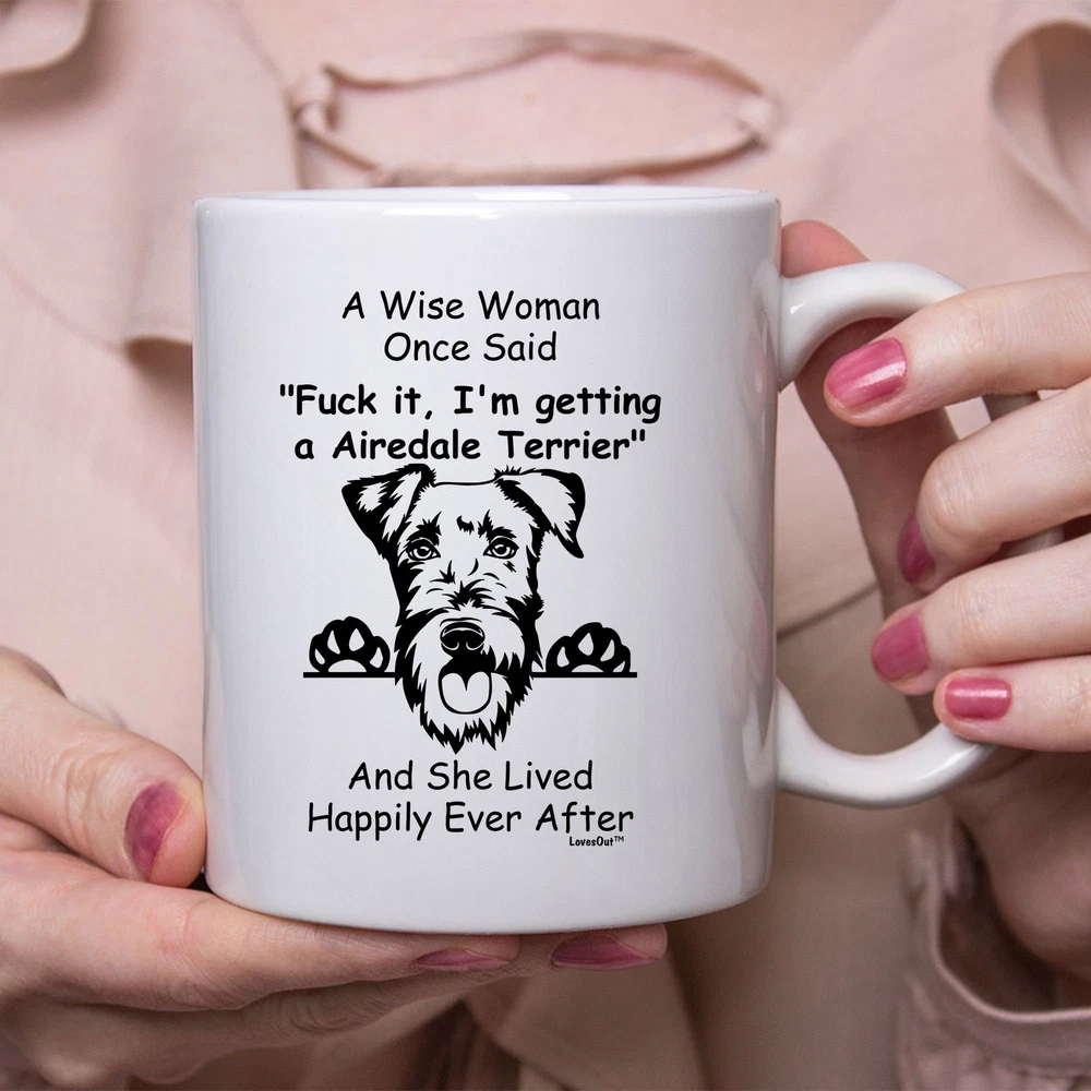 Funnyairedale Terrier Gifts For Women A Wise Woman Once Said Coffee Mug White Product Details.. This high quality 11oz. ceramic white mug has a premium hard coat that provides crisp and vibrant color reproduction sure to last for years. Perfect for all hot & cold beverages. The highest quality printing possible is used. It will never fade no matter how many times you wash it. Material: 100% Ceramic. Print both sides. Dishwasher and Microwave Safe. High Gloss + Premium White Finish. Printed in the U.S.A. Personalized & Custom. We support personalized and custom mug to add custom, when placing an order, you can add notes to the "order note" in shipping address section. Also you can contact us directly via message. Shipping Info. Ready to ship in 1 to 2 business days, All products are made-to-order and proudly printed in the United States. Shipped by USPS and DHL, You will receive your order in 5-7 days. Replace & Refund. All products are defective during shipping broken, chipped will be replaced free of charge. You are not satisfied with the product, we will refund 100% money to you. If any other issues arise, please do not hesitate to message, we would be more than happy to assist you.
