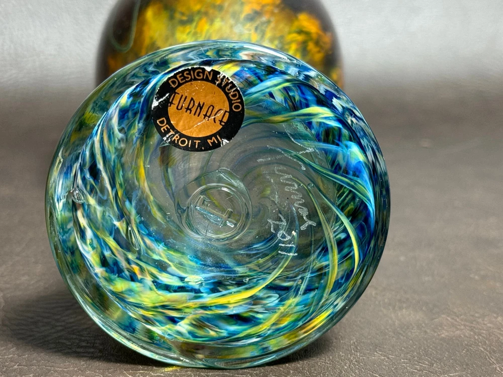 Trinity Antiques ~~~ Description: Furnace Design Studio Art Glass Vase Detroit Michigan Tiffany Loetz Blown 2011 Measures about ... 9" weights about ... 1 lbs Condition: Please LOOK at the photos ... Overall Condition AS SHOWN ... surface wear ... minimal ... Shipping: USPS MAIL / FEDEX ...1 lbs ... plus packaging & Insured / Signature Confirmation ... PLEASE Check shipping COST before bidding There is a GOOD start price SO a $3 Fee has been ADDED to the cost of SHIPPING to cover expenses :) Love Antiques & Treasures I am not an expert Antique Dealer I just go to local sales & thrift stores & hope to resell :) PLEASE * NO RETURNS * Take time TO READ the Description LOOK OVER PHOTOS ASK QUESTIONS before bidding REVIEW my Feedback score & comments * PLEASE DO NOT BE OFFENDED * BUYERS PLEASE ... try not complaining when you really just want some money back, but still want to keep the treasure :( PLEASE ... try not stealing some items in a lot & just returning what you did not want :( PLEASE ... try not returning your own damaged goods :( PLEASE ... try really hard not to hurt my family with false claims :( ~~~ I have a wonderful & loving 14 year old autistic son :) I truly appreciate YOUR support as every penny of my ebay sales gives us the joyful opportunity to homeschool & work from home Thank You ~~~ May the peace of G*D be with us all ~~~