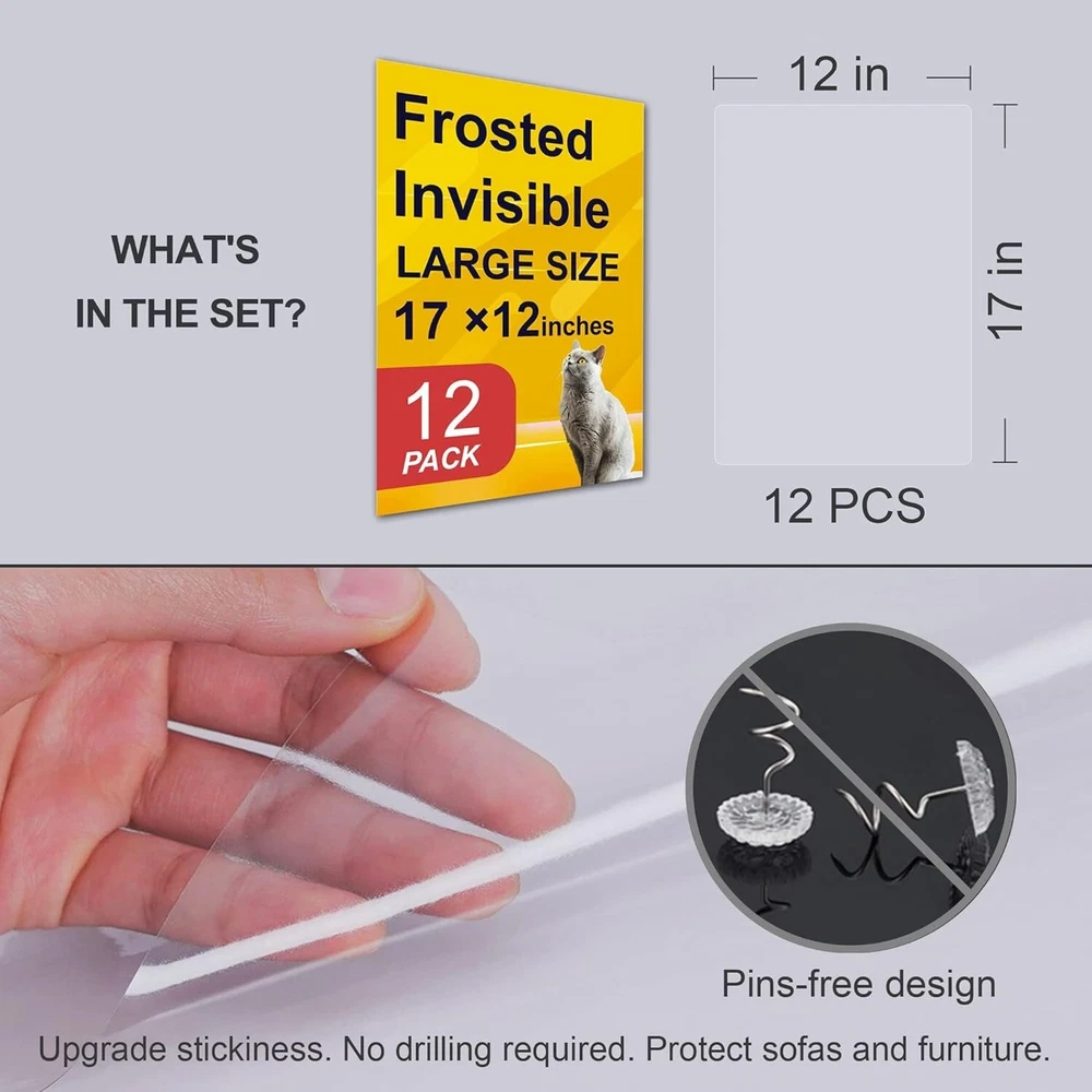 Furniture Protectors from Cats Couch Corner Protector for anti Cat Scratch Furn About this item: Large area coverage: 12PCS 12" x 19", this cat scratch deterrent furniture protector pasted in any corner of the sofa;This anti scratch cat tape can also be cut into any shape and size to meet the use of all furniture. Ultra-thin forsting: The frosted surface of the product will not reflect glare under bright light,thickness is only 0.15mm, adhered to the surface of the furniture, fully integrated into the interior decoration style.This cat scratch protector will not be teared Easy install: Very easy to install, no complex steps nor tools.1:Peel off the self-adhesive pad 2: stick the pad where you want to protect (Can bend around the contour of the furniture).You can cut them to size if needed as well. The biggest area covered on the market------NOTE------Please purchase our brand Aoukar, we only provide quality products Flexible durable : Our furniture guards for cats made of Non-Toxic clear vinyl, It’s durable and thick enough to deter cat scratching also flexible enough to bend around the contours of your furniture to stop cat claws from shredding couch Quality and satisfaction guaranteed: We are deeply committed to providing a superior shopping experience to our customers. Our professional customer service representatives are ready to assist you with any questions you may have