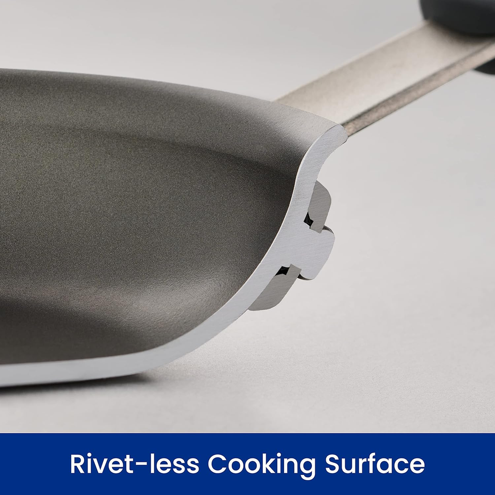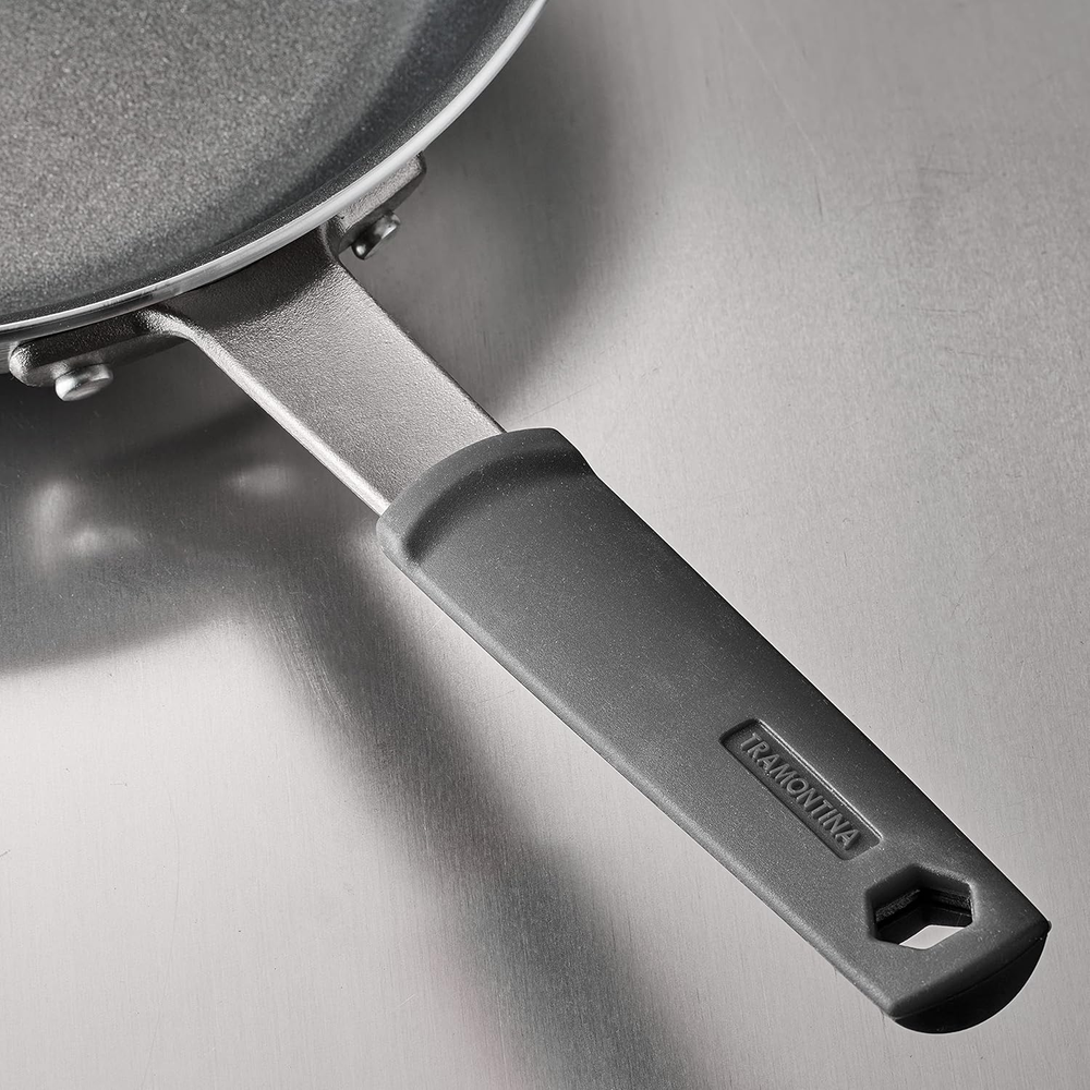 PROFESSIONAL QUALITY: Designed to withstand the rigors of a professional kitchen and perfect for everyday home use. REINFORCED NON-STICK COATING: Reinforced Fusion rivet-less cooking surface for effortless release and fast cleanup. HEAVY-GAUGE ALUMINUM: Ensures quick and even heat distribution for consistent cooking results and superior durability. VERSATILE COMPATIBILITY: Suitable for gas, electric, and ceramic glass cooktops (not suitable for induction). Oven safe up to 400°F / 204°C. Great for cooking eggs and omelettes. COMFORTABLE HANDLE: Solid cast stainless-steel handle with soft-grip silicone sleeve. Removable sleeve allows for use in the oven. EASY MAINTENANCE: Dishwasher-safe for convenient cleaning. NSF CERTIFIED: Meets professional kitchen standards for quality and safety. MADE IN BRAZIL: Proudly manufactured in Brazil with high-quality materials. LIFETIME WARRANTY: Built to last with Tramontina’s lifetime warranty, giving you peace of mind with every meal. Tramontina's PRO Fusion Fry Pan is Made in Brazil and features the new Fusion Rivet System which provides a rivet-less, smooth interior cooking surface. This clever and exclusive system provides easy cooking and effortless cleanup, while maintaining all the strength and durability of a traditional riveted handle assembly. The rivet-less cooking surface, combined with the advanced nonstick, provides high performance and excellent food release. The Professional cookware collection from Tramontina is designed to stand up to the rigors of restaurant kitchens—and offers an excellent value for home cooks. Ideal for frying, scrambling, sautéing and searing your favorite recipes, the fry pan is constructed of commercial-grade; heavy-gauge aluminum distributing heat quickly and evenly, while the reinforced nonstick interior allows food to easily release from the pan for effortless cooking and cleanup. The cast stainless steel handle adds support and features a removable, silicone, soft-grip for maneuverability. Part of the TRAMONTINA PROFESSIONAL collection, which features items designed and crafted to optimize performance in both commercial and gourmet kitchen; design, material, finishes and fixtures are carefully selected to provide exceptional durability to match the expectations of professional chefs.