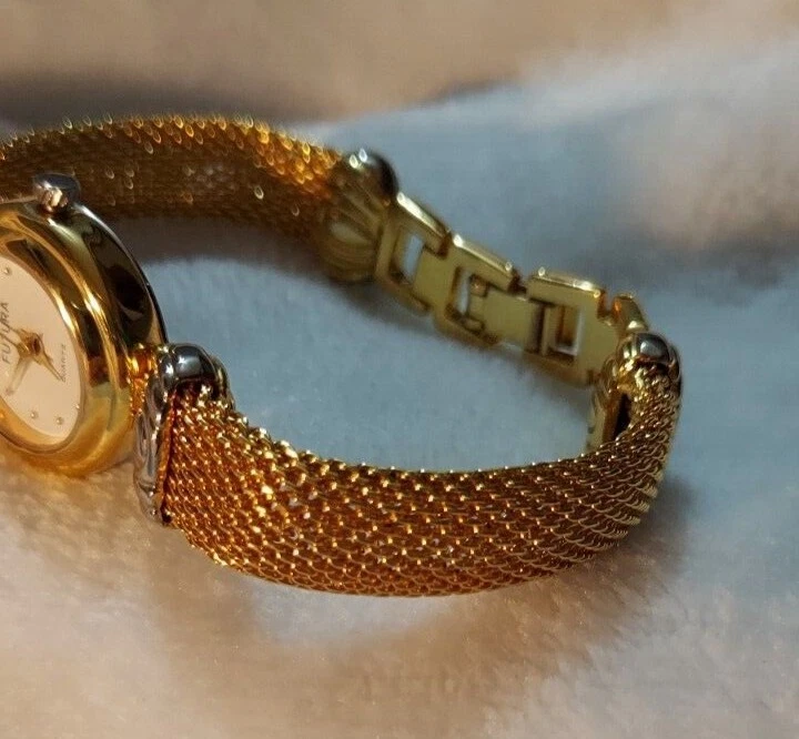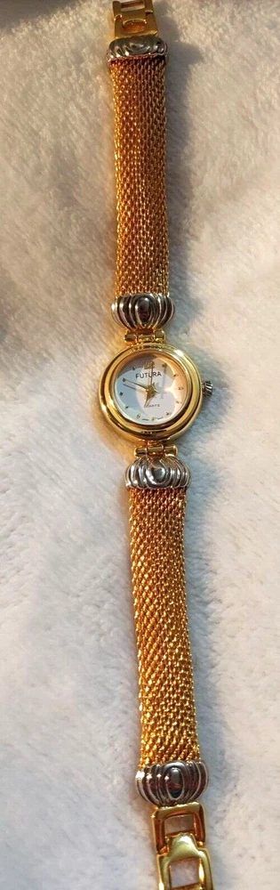 Futura Women's Watch Stainless Gold Silver Quartz Japan Movement Needs Battery. This is a nice watch, has a snake like smooth band. Has been stored away and never worn. 7 inches long. See all photos. If you purchase multiple items shipping can be combined.