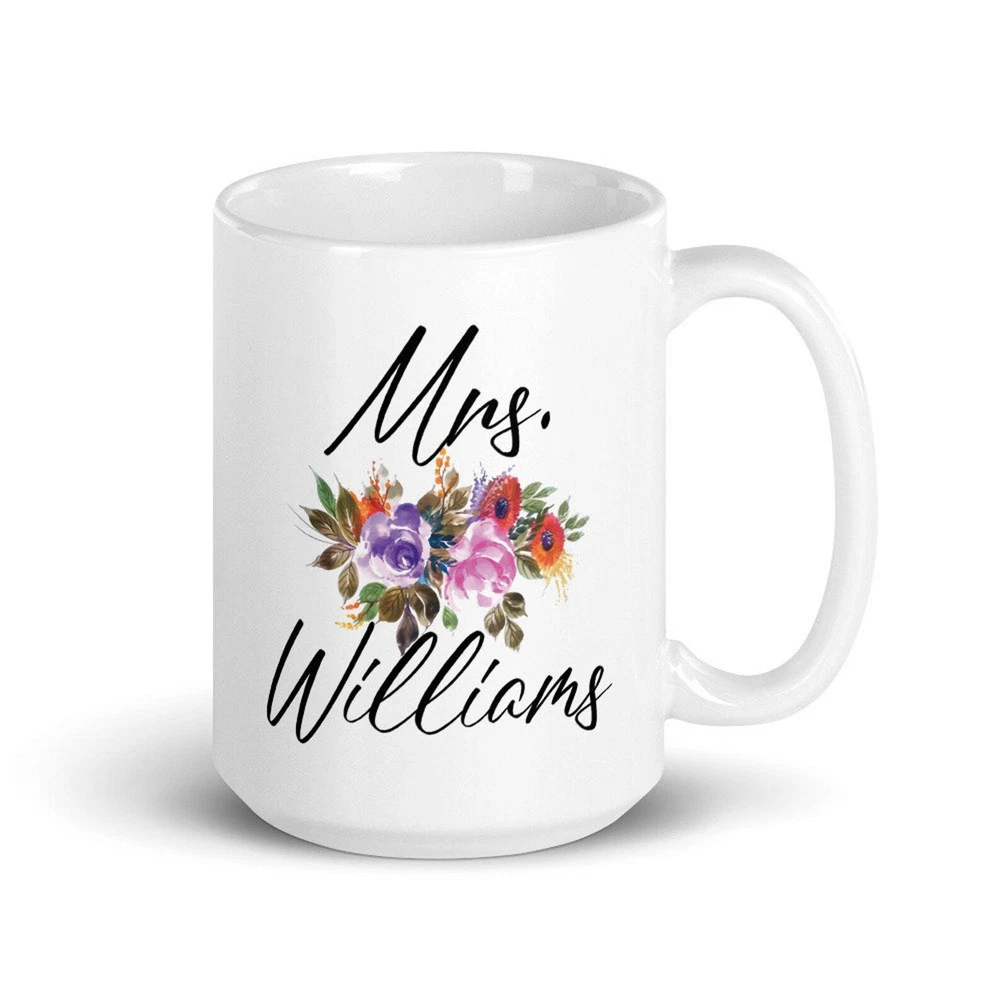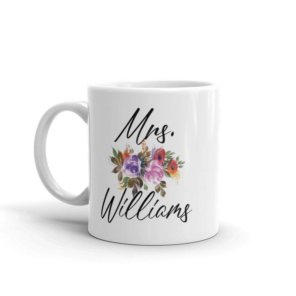 Future Mrs Mug Wifey Mug Mrs Mug Wedding Gift Bride To Be Gift Floral Wedding Product Details.. This high quality 11oz. ceramic white mug has a premium hard coat that provides crisp and vibrant color reproduction sure to last for years. Perfect for all hot & cold beverages. The highest quality printing possible is used. It will never fade no matter how many times you wash it. Material: 100% Ceramic. Print both sides. Dishwasher and Microwave Safe. High Gloss + Premium White Finish. Printed in the U.S.A. Personalized & Custom. We support personalized and custom mug to add custom, when placing an order, you can add notes to the "order note" in shipping address section. Also you can contact us directly via message. Shipping Info. Ready to ship in 1 to 2 business days, All products are made-to-order and proudly printed in the United States. Shipped by USPS and DHL, You will receive your order in 5-7 days. Replace & Refund. All products are defective during shipping broken, chipped will be replaced free of charge. You are not satisfied with the product, we will refund 100% money to you. If any other issues arise, please do not hesitate to message, we would be more than happy to assist you.