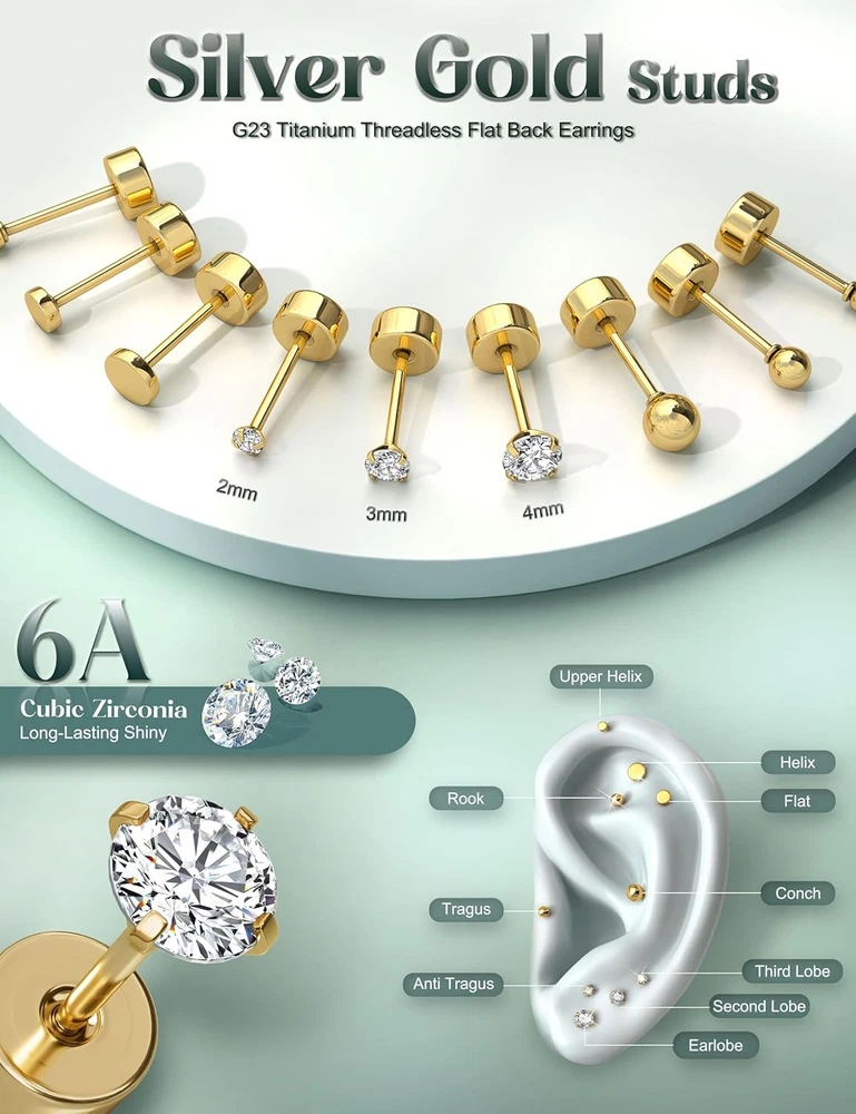 Store New Arrivals Add to Favorite View Feedback Contact G23 Titanium Hypoallergenic Earrings for Women Men Threadless Flat Back Earrings Gold Silver Earrings Studs Flatback Tiny 2Mm/3Mm/4Mm CZ Ball Dot Cartilage Earring Tragus Helix Piercing Jewelry Description Metal stamp 14K Gem Type Cubic Zirconia Color 14K Gold Tone-CZ Material Titanium Metal Titanium Setting Prong Department Unisex Adult Back finding Push Back Number of stones 2 Package Dimensions 2.76 x 2.76 x 0.39 inches; 1.06 ounces Size 4MM Product Description Titanium Earrings Flat Back Earrings for Women Men ABOUT US We offer the best prices around on high quality products. Our E-store includes media such as books, movies, music and games while offering electronics, toys, sporting apparel, clothing, tools, general home, garden items and more. SHIPPING We are always working hard to ensure your package arrives as soon as possible. Please understand that some factors like weather, high postal traffic, and the performance of shipping companies are outside of our control. We offer free shipping to the lower 48 states and ship within 2 business days of payment, usually sooner. We do not accept P.O. Boxes. Please provide a physical address. For shipping outside of the continental USA, we only use eBay's Global Shipping Program.The item is shipped to KY and then sent to the rest of the world. International customers are responsible for all duties and taxes. Continue to check out in order to calculate costs for shipping the item to your country. Messages regarding eBay's Global Shipping Program MUST be directed at eBay EXCLUSIVELY. RETURNS We offer a 30-Day Return Policy on items which you are not completely satisfied with. You have the option for a full-refund or an exchange of the item. No returns are available on items shipped outside of the USA. PAYMENT We accept PayPal. CONTACT US This page content is yet to come Please ad us to your favorite seller and visit again later Thank You CUSTOMER SATISFACTION We try our very best to make sure every customer is completely satisfied. If there's a problem, message us! We're happy to help. WE ACCEPT Copyright © 2021 AutoDS. | All Rights Reserved