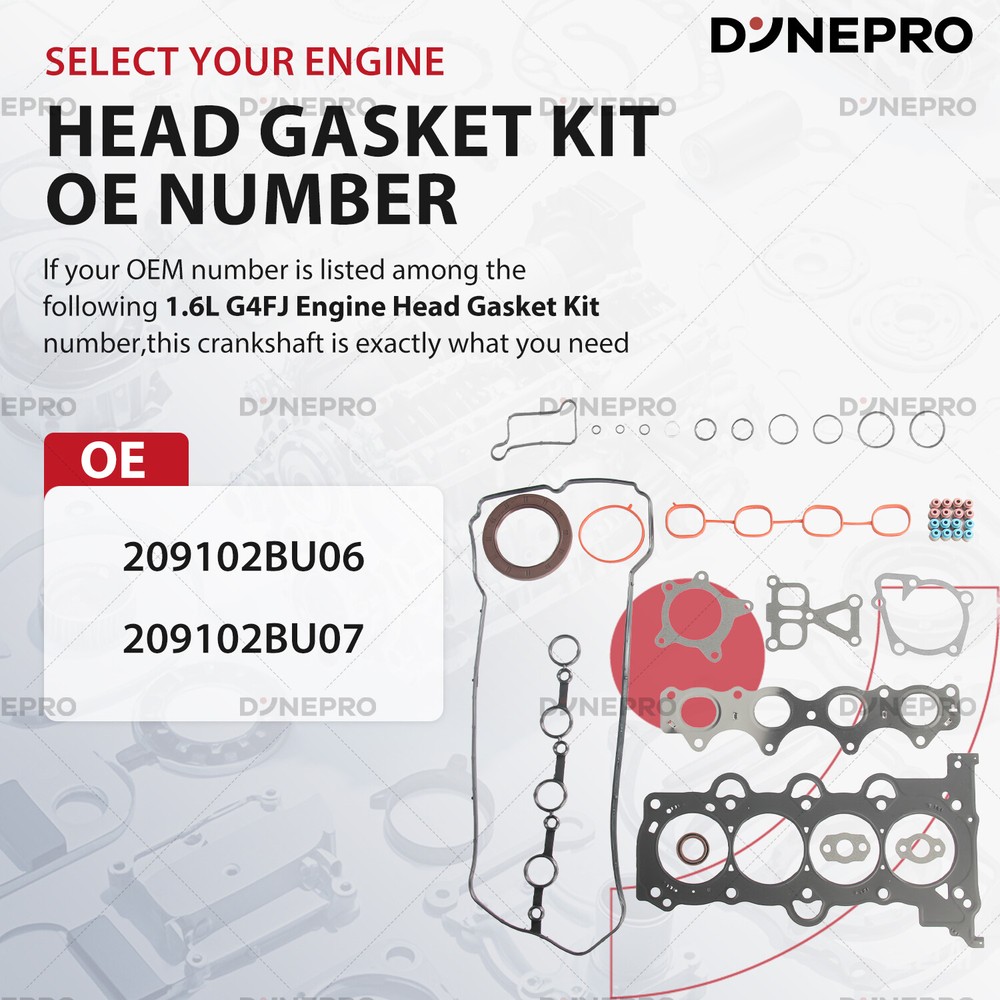 Engine Parts Installation Guide About Us Contact Us Feedback Dynepro® Pro Series Master Engine Rebuild Kit For Hyundai OEM Spec Certified Engine Repair Kit Precision Engineered · Factory Reliability ⭕ Cylinder Gasket Set Five-layer composite structure: 0.1mm stainless steel liner (resists high-pressure deformation) Aramid fiber sealing layer (withstands 350°C continuous thermal shock) Graphite coating (self-adapting micro-gap filling) Passed 100,000 thermal cycling tests for factory-grade sealing. ⭕ Built For Hyundai Owners: ✔️ Oil sludge cleanup (Theta II/Lambda engine rebuilds) ✔️ Timing chain rattle fixes (Nu/Gamma engines, includes tensioner tool) ✔️ Turbo failure prevention (1.6T/2.0T models, full gasket/seal refresh) ✔️ 200,000km+ overhauls (full bolt kit with factory torque specs) ⭕ For Hyundai TechTrust : ✔️ Restore factory power. Drive with Korean precision. ✔️Order Now – Free OEM Repair Manual Included! Support: Email us (Master Techs on call) ⭕ Why Genuine? ⚠️ Cheap parts fail: Non-genuine pistons crack under GDI’s 150-bar fuel pressure. Knockoff chains stretch, causing valve-piston interference. ✅ for Hyundai spec Certified : 100% material compliance with Hyundai MS-350 durability standards. Direct from OEM Plant spec suppliers. 5-year unlimited-mileage warranty. Vehicle Application Compatible with: G4FJ 1.6L engines. for Hyundai Accent 2012-2018 1.6L GAS Naturally Aspirated for Hyundai Elantra 2017-2020 1.6L GAS Turbocharged for Hyundai Elantra GT 2018-2020 1.6L GAS Turbocharged for Hyundai Kona 2018-2020 1.6L GAS Turbocharged for Hyundai Tucson 2016-2018 1.6L GAS Turbocharged for Hyundai Veloster 2012-2017 1.6L GAS Naturally Aspirated for Hyundai Veloster 2013-2021 1.6L GAS Turbocharged for Kia Forte5 2014-2018 1.6L GAS Turbocharged for Kia Rio 2013-2017 1.6L GAS Naturally Aspirated for Kia Seltos 2020-2023 1.6L GAS Naturally Aspirated for Kia Seltos 2021-2025 1.6L GAS Turbocharged for Kia Soul 2011-2018 1.6L GAS Naturally Aspirated for Kia Soul 2017-2018 1.6L GAS Turbocharged Note: VIN confirmation required. What's included in this complete bundle set -Full Gasket Set -10 Cylinder Head Bolts Shop Now >> Instant Fitment Email your Hyundai model (e.g., Elantra, Tucson, Santa Fe) and year → Get a repair kit tailored to your VIN. Restore factory power, drive like new. Tech Support: Email us (Provide VIN for tailored parts list) Learn More Learn More Learn More PAYMENT We accept eBay managed payments for all orders. If you have any questions, please contact us. SHIPPING Ordering this kit requires additional information: the vehicle engine model as well as the VIN (17 digits), and also requires you to verify a match to your vehicle using the vehicle application data on Ebay. Be sure to provide this information when placing your order or via a separate message. Product will be shipped within 1-3 business days after full payment is received and verified. Delivery Time is about 3-7 business days to most of countries. We ship the package to your shipping address in eBay instead of the one in PayPal. Please tell us your shipping address if it is different from the one in eBay. RETURNS We offer eBay's best return policy. If you utilized Ebay's fitment and the parts you received do not fit your vehicle, we will pay to have them returned. Should you desire to return this kit for any other reason, Includes kits that are incorrect because you did not provide the VIN in the order notes, you will be responsible for return shipping. These kits are heavier and cost more to ship, so we ask that you provide vehicle information and verify suitability before ordering.Unfortunately, we cannot accept returns from international customers at this time. ★★★★★ So far the engine overhaul kit has performed well. I love the performance with this kit installed. On my 2004 F150. Installation was easy. Everything is perfect. Considering this kit is cheap, it doesn't get any better than this. ----James ★★★★★ This was a great price. lt was made in the USA. After 10,000 miles it is running great. ----Liam ★★★★★ As of the time of this review this is well worth the money and it fits as it should. ----Noah ★★★★★ This set was installed perfect fit. lt has been installed on a truck that has been used very much every day. Working perfect and so much cheaper than the auto stores. ----Ethan ★★★★★ Seemed to be a perfect replacement part and it works. ----Oliver ★★★★★ Everything fit how it was supposed to and have been driving it for a week with no problems. ----Benjamin ★★★★★ The seller was very nice and provided me with professional advice on the installation, which was a breeze and is still going strong after 10,000 miles. ----Michael