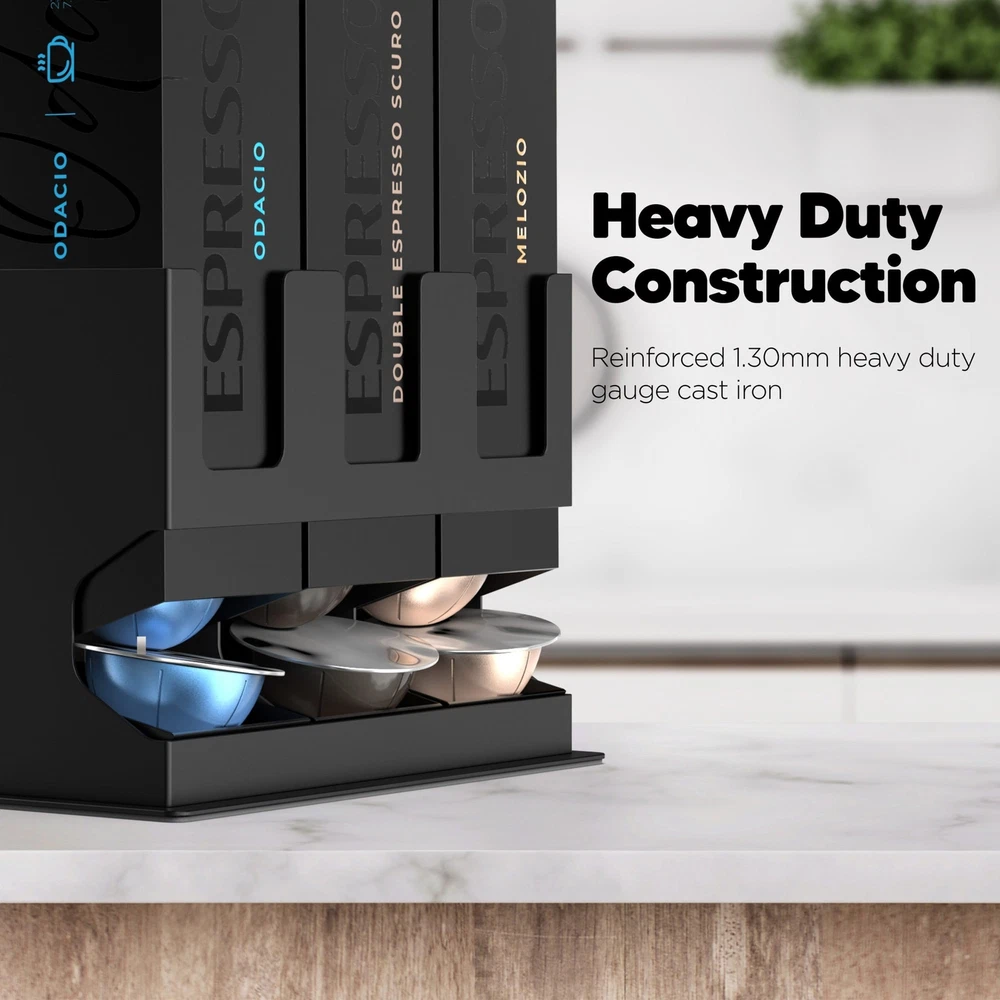 GALVANOX Pod Dispenser Designed for Nespresso Vertuo Capsules (3 Box Sleeve Holder) Freestanding Countertop Organizer Stand, Non-Slip Steel Base, Dispenses 3 Coffee Flavors (30 Vertuoline Pods) The 3-Sleeve Dispenser for Vertuo pods offers the perfect convenient solution for organizing and dispensing your Vertuo coffee pods directly from the original box. (Capacity: 3 boxes / 30 pods) Made of heavy duty metal, this coffee pod holder is built to last and adds a modern feel to your kitchen decor. The weighted base and easy reload design make it suitable for office use as well. The dispenser system keeps 3 boxes of your favorite flavors easily accessible, giving you the flexibility to choose the one that suits your mood at any given time. Space saving design can fit snugly against the wall to free up valuable counter space. (Dimensions: 8" x 5.5" x 3.5") Heavy duty 1.30mm gauge steel construction ensures long term durability, with a non-slip base to keep the dispenser securely in place. Shipping We offer FREE shipping on all orders! We ship within Three business days of payment, usually sooner. We use a selection of shipping services such as UPS, FedEx, USPS etc. We only ship to the lower 48 states, no APO/FPO addresses or PO Boxes allowed. Local pickups and combined shipping options are not provided at this time. Return You can return a product for up to 30 days from the date you purchased it ONLY if it's in the original condition. The product cannot be used or open. Any product you return must be in the exact same condition you received it and in the original packaging. Please keep the receipt. Feedback Customer satisfaction is very important to us. If you have any problem with your order, please contact us and we will do our best to make you satisfied. Contact Us If you have any queries, please contact us via ebay. We usually respond within 24 hours on weekdays. Please visit our eBay store to check out other items for sale! Thank you for shopping at our store.