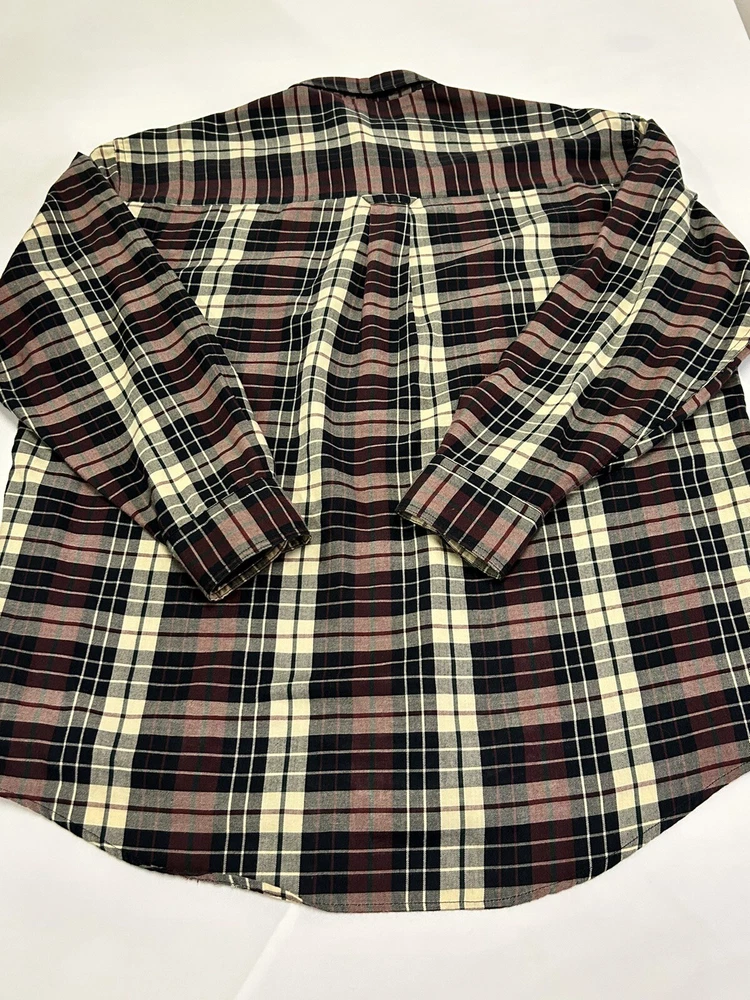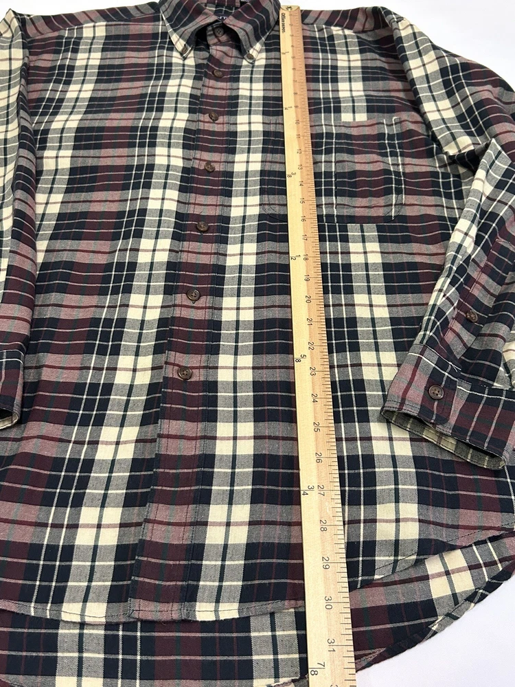GANT Shirt Mens Large Heritage Twill Burgundy Black Cream Plaid Long Sleeve Button Up. Preowned in Excellent Condition. 30 inches shoulder to hem 25 inches pit to pit 23 inches sleeve Photos are part of description. We make an effort to supply plenty of photos to assist in your buying decision. Clothing: Please check appropriate measurements before purchasing. Preowned clothing may or may not have been worn, laundered or dry cleaned. Known details and observations are provided, as well as pictures. Seller welcomes communication and questions from potential Buyers. We operate under The Golden Rule....Do Unto Others, so please contact us through eBay if we can answer a question, provide more info, resolve an issue or improve your experience. It is our desire and plan to provide 5 Star service to every customer with fast shipping and accurate descriptions. We appreciate positive feedback. If there is a mistake, please allow us an opportunity to correct it before opening a ticket with eBay or leaving negative feedback. RETURNS: We offer a generous 30 Day return policy for items not as described or non-working unless otherwise described in listing so you can shop with confidence. We package carefully, so if an item is damaged during delivery, buyer will need to file a claim with carrier. Authorized returns must be returned with all the same packaging and box. Seller paid shipping for authorized domestic returns if not as described. Customer to pay return shipping for any authorized returns from international customers, Hawaii, Alaska, Guam, or anywhere outside of domestic U.S. SHIPPING: Shipping supplies have increased in cost. We try to obtain the lowest cost on supplies to keep shipping as reasonable as possible. There are many factors that affect shipping costs. When possible we try to upgrade shipping to Priority when able to use their supplies, facilitate faster shipping and insure package, especially for fragile items. We are happy to combine shipping with items purchased & paid the same day. Orders are always shipped out within one business day unless we are on a published time away. Many times shipping will occur same day. Note: Due to scammers, purchases made from Buyers with new accounts and/or no feedback may be cancelled and not shipped. We do not communicate outside of the eBay platform. International & Non Domestic Buyers: shipping will be handled through the eBay Global Shipping Program. Import duties, taxes, and charges are not included in the item price or shipping cost. These charges are the buyer's responsibility. Please check with your country's custom's office to determine what these additional costs will be prior to bidding or buying. We do not ship to P.O. Boxes. The Stanley Co will make every effort to make you a happy customer! Thanks for shopping with The Stanley Co! SEE ALL OUR EBAY LISTINGS HERE: TheStanleyCo.com