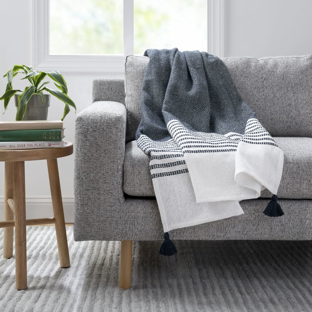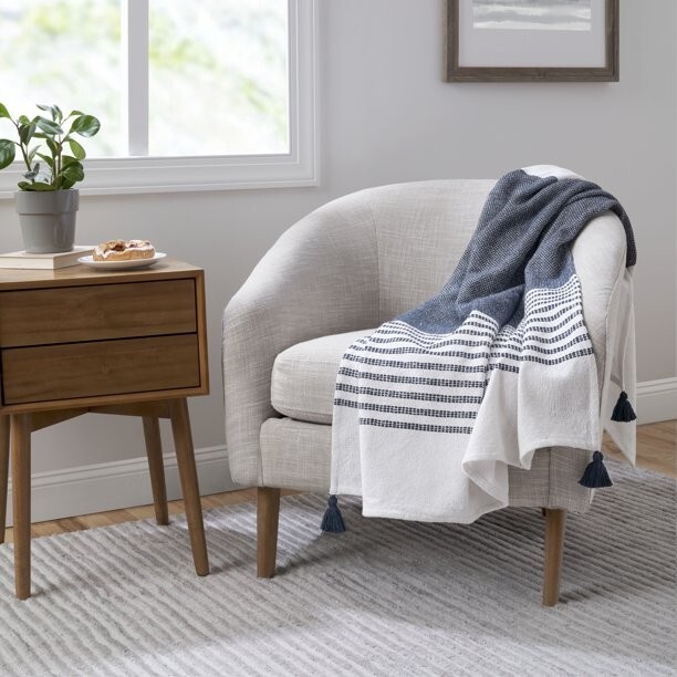 Well-crafted with soft organic cotton that just gets better with time, the Gap Home Mini Twill Stripe Organic Cotton Throw with Fringe brings a stylish touch to your sofa, chair, or bed. Featuring a vertical mini-stripe design and a fringe finish, it’s made with more sustainable materials and available in three different colors designed to easily mix and match with other Gap Home collections available exclusively at Walmart. Gap’s first-ever home collection reimagines timeless American style for modern living. Discover quality designs and go-to essentials that instantly refresh each room. Think super-soft bedding, elevated tableware, and more inspired finds for daily life. 100% ORGANIC COTTON: Made with a high-quality, textured, yarn-dyed twill MORE SUSTAINABLE: GOTS (Global Organic Textile Standard) 822578 and OEKO-TEX® 100 2020OK1702 AITEX certified free of harmful chemicals STRIPE DESIGN: Features a vertical mini-stripe design throughout with self-fringe detail and each end for added dimension DIMENSIONS: Measures 50” x 60” VERSATILE: Use this versatile throw in different rooms including the bedroom, living room, den, or home office; it also makes a great housewarming gift CARE INSTRUCTIONS: Machine wash cold separately, gentle cycle, remove promptly, use only non-chlorine bleach when needed, tumble dry low, low iron when needed, do not dry clean; Recommended to wash before use