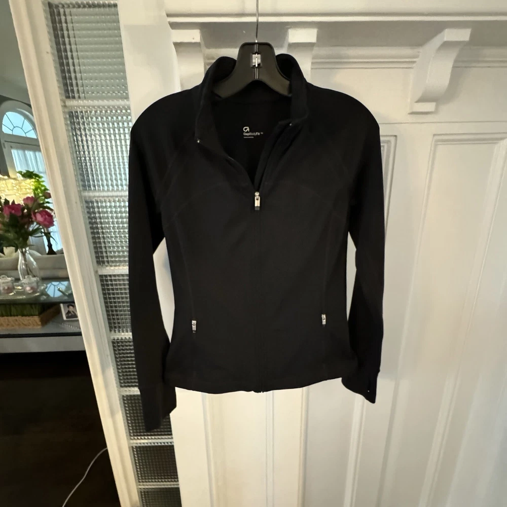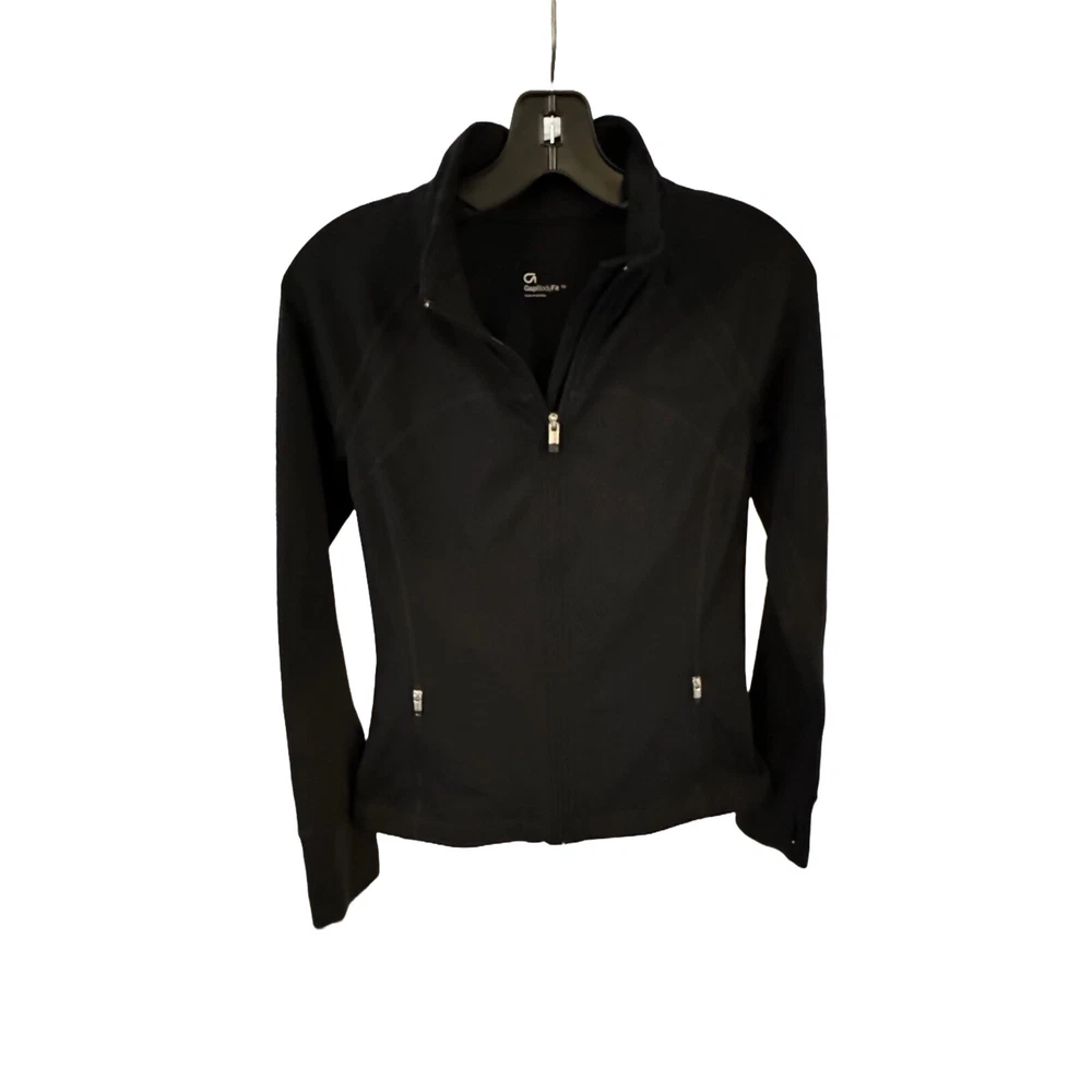 Elevate your activewear game with this GAP FIT women's jacket. The short length and full zip closure make it perfect for any performance activity, whether it's walking, cross training, yoga, running, or jogging. The softshell fabric type ensures comfort and durability, while the black solid pattern and fitted fit adds a touch of style. This jacket is perfect for any season, whether it's winter, summer, fall, or spring. The jacket features thumb holes and is made with polyester outer shell material, making it a great addition to any activewear collection. The GAP Body Fit product line ensures quality and the jacket is designed for women, with a regular size type and XS size. Get ready to perform in style with this GAP FIT women's jacket.