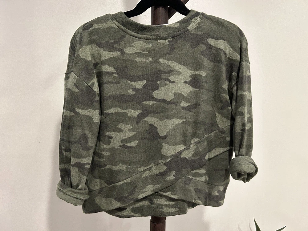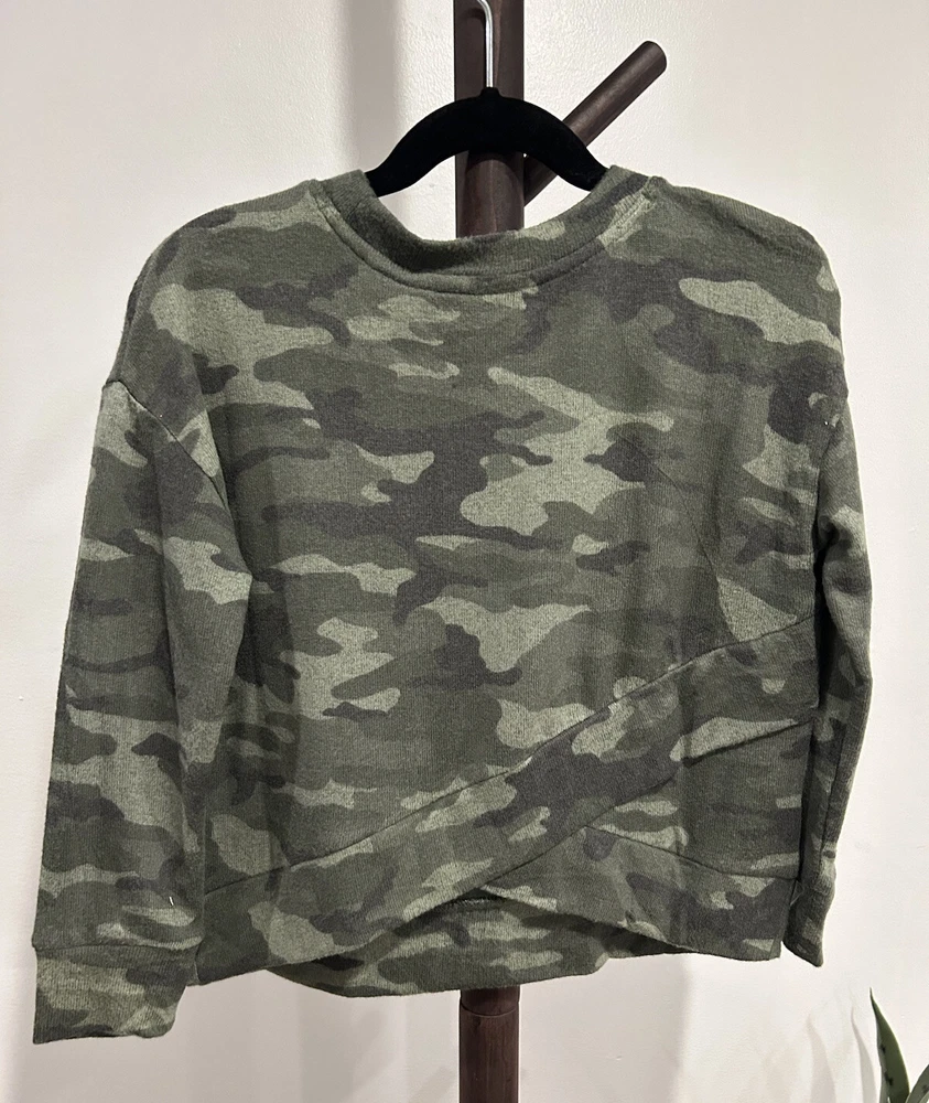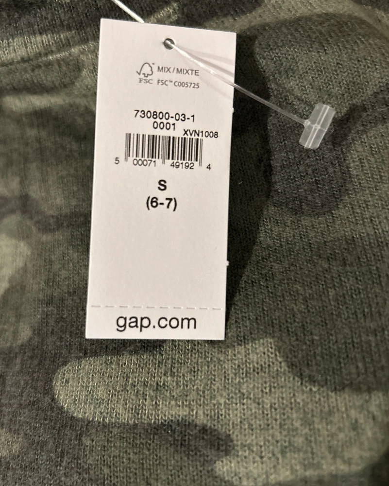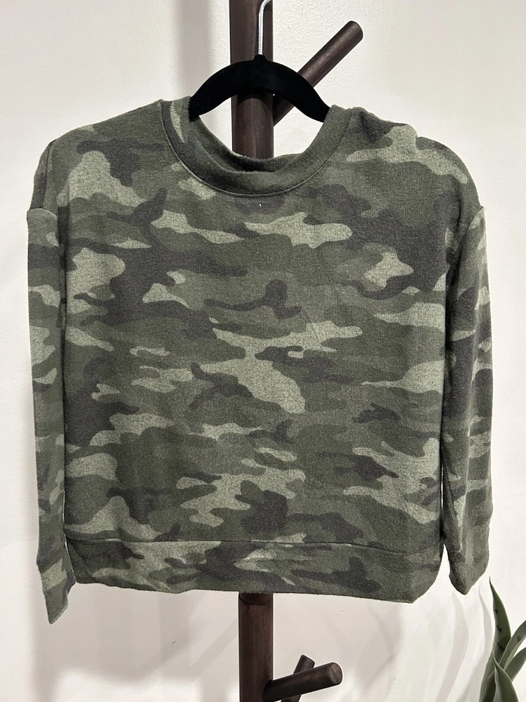 Material: Rayon Blend Pattern: Camouflage Theme: Camo Features: Lightweight, Open Style: Pullover Department: Girls Brand: Gap Closure: Pullover UPC: 0500071491924 Fabric Type: Knit Character Family: Camo Neckline: Crew Neck gtin13: 0500071491924 Type: Casual Season: Fall, Spring Sleeve Length: Long Sleeve Character: Camo Size: S Color: Green