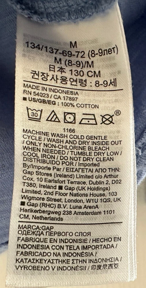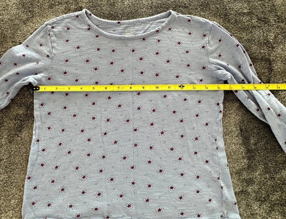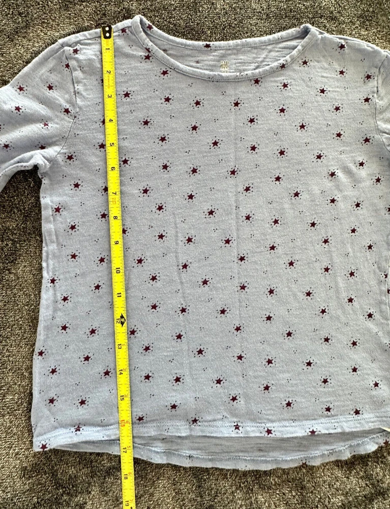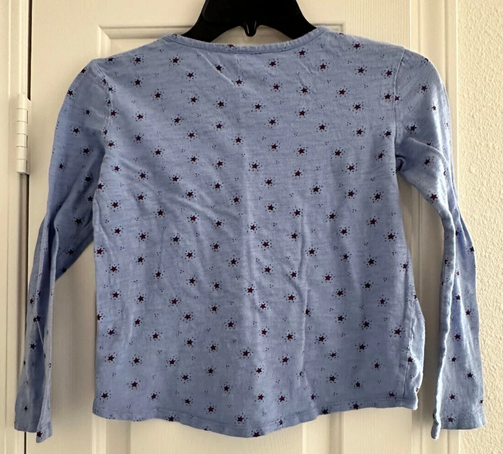 Brand: Gap Country/Region of Manufacture: Indonesia Neckline: Round Neck Fit: Regular Theme: Stars Color: Blue Pattern: Solid Material: 100% Cotton Sleeve Length: Long Sleeve Handmade: No Department: Girls Garment Care: Machine Washable Performance/Activity: Running & Jogging, School, Walking Season: Fall, Spring, Summer, Winter Personalize: No Vintage: No Closure: Pullover Features: Easy Care Size: 8-9 Style: Pullover Occasion: Activewear, Casual, Travel Type: T-Shirt