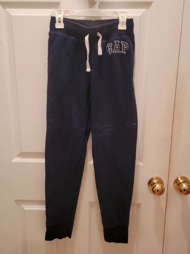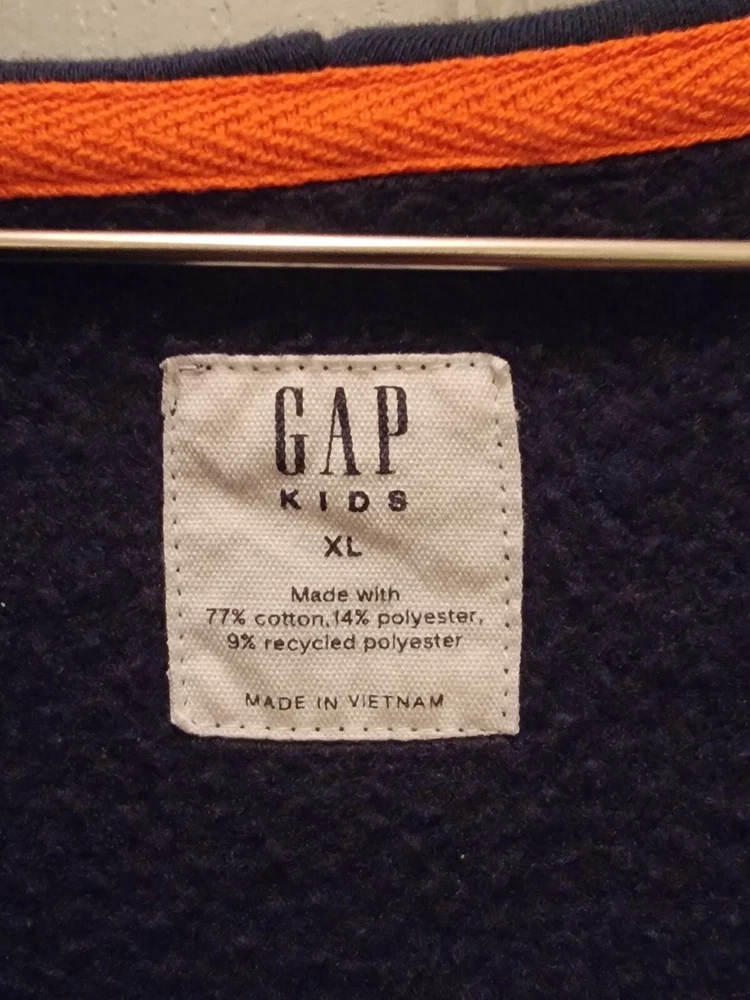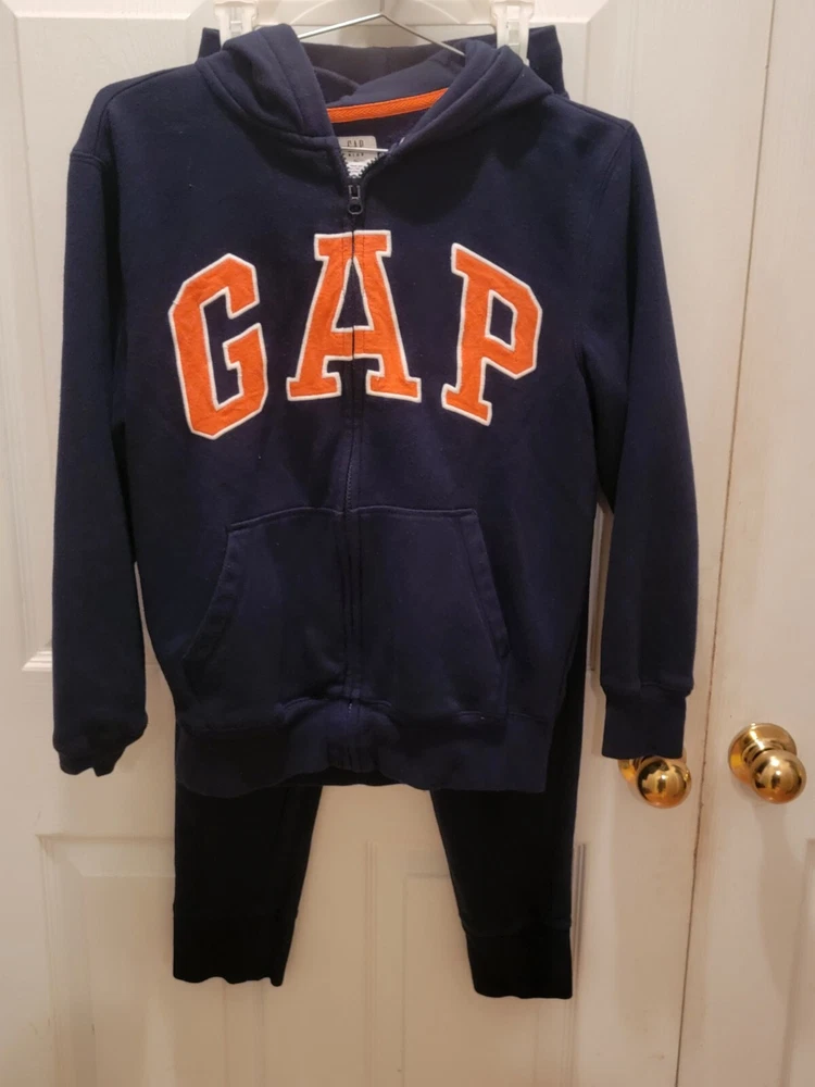 GAP Kids Navy Blue & Orange Boys Sweatsuit with Logo Zip Up Hoodie - Size XL Description: Brand: GAP Kids Type: Sweatsuit Size: Youth XL Gender: Boys Color/Pattern: Navy Blue with Orange Font Material: 100% cotton Condition: Excellent Used Condition Features: Orange GAP name across the chest on the zip up jacket. White embroidered GAP name on pants. *See pics for details* Additional Notes: Smoke-free, pet-free home Machine washable Ready to ship, fast delivery