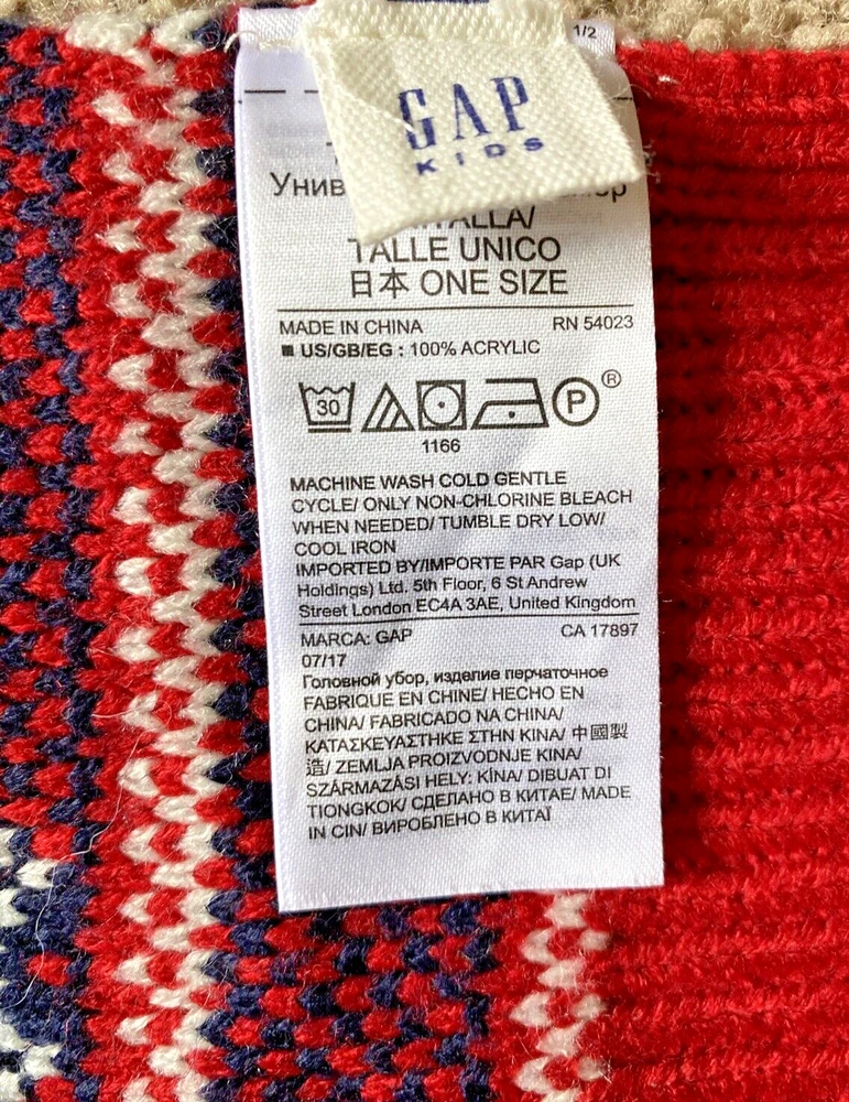 Add a touch of style to your little girl's winter, fall, or spring outfit with this GAP Kids Red-White-Blue Neck Scarf with Hearts. The scarf is perfect for keeping your child's head and ears warm on chilly days while adding a pop of color and pattern to their ensemble. The scarf is made of high-quality materials and features a cute heart pattern that will make your little girl stand out from the crowd. This scarf is a great addition to any girl's wardrobe and is perfect for any occasion.