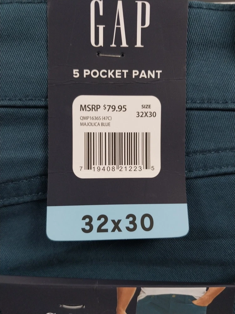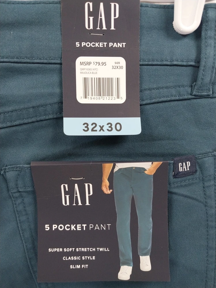 NEW WITH TAGS GAP Men’s 5 POCKET PANTS 32 x 30 SLIM FIT Stretch Majolica Blue (47C) $79.95 *Style: QMP16365 *Super Soft Stretch Twill *Classic Style *Slim Fit