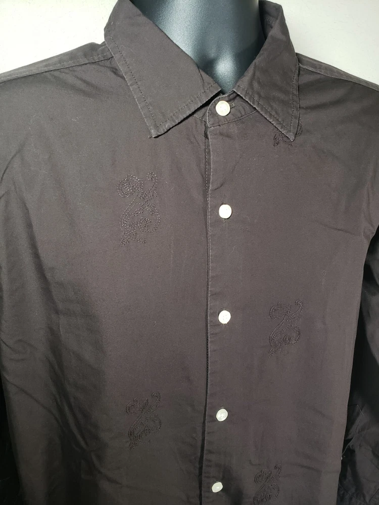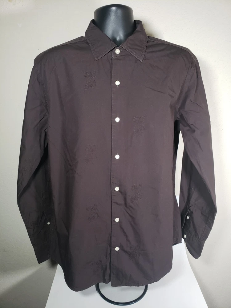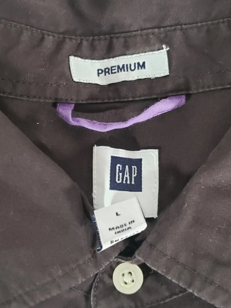 Garment Care: Machine Washable Pattern: Solid Collar Style: Spread Size Type: Regular Accents: Embroidered Vintage: No Occasion: Casual, Party/Cocktail Neckline: Collared Features: Embroidery MPN: 54023 Sleeve Length: Long Sleeve Size: L Shirt Length: 31 in Material: 100% Cotton Country/Region of Manufacture: India Type: Dress Shirt Fit: Regular Chest Size: 23 in Dress Shirt Size: L Department: Men Brand: Gap Model: Premium Closure: Button Color: Black