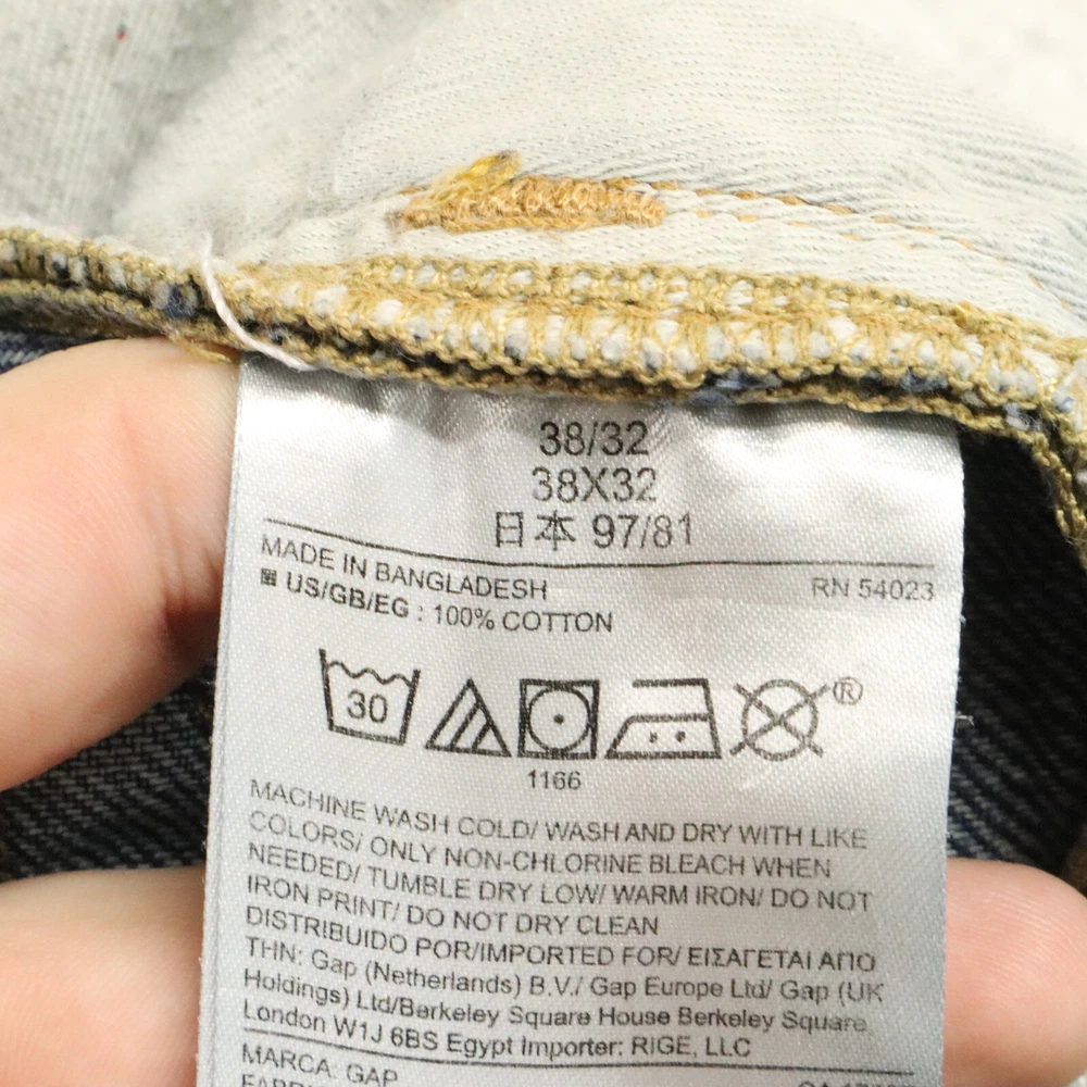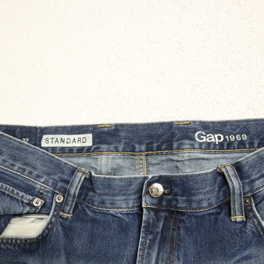 Department: Men Rise: See Picture #8 Closure: See Picture #7 Inseam: 32 in Size Type: Regular Theme: None Size: 38 Fabric Type: Denim Country/Region of Manufacture: Unknown Features: Comfort, Pockets Color: Blue Waist Size: See Picture #6 Style: Ankle Leg Opening: See Picture #5 Fabric Wash: Medium Fit: Regular Material: Cotton, See Picture #11 Accents: None Vintage: No Brand: Gap Type: Jeans Model: None Product Line: Unknown Pattern: Solid