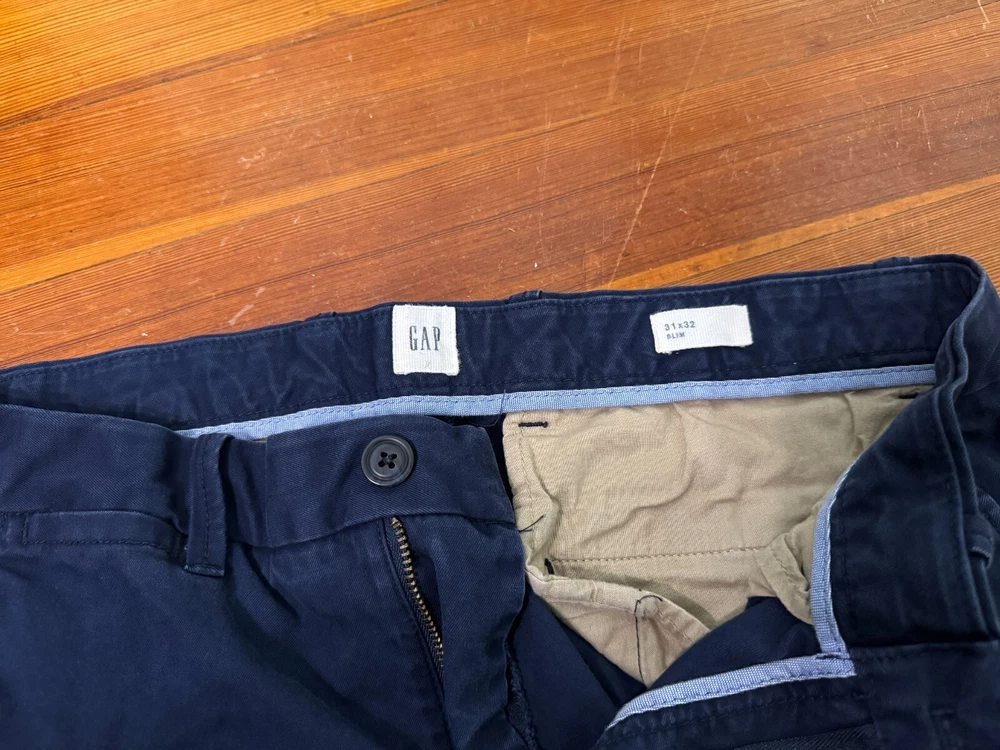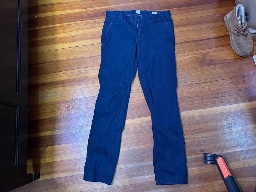 1x Pant: GAP Slim Fit Chino Khaki Pants - Navy Blue Size: Men's 31x32 Waist: 31 Inseam: 32 Condition: Used lightly - see photos for conditions. Style: NAVY BLUE (Dark Blue / Navy) Will Ship ASAP! Serious Inquiries Only!
