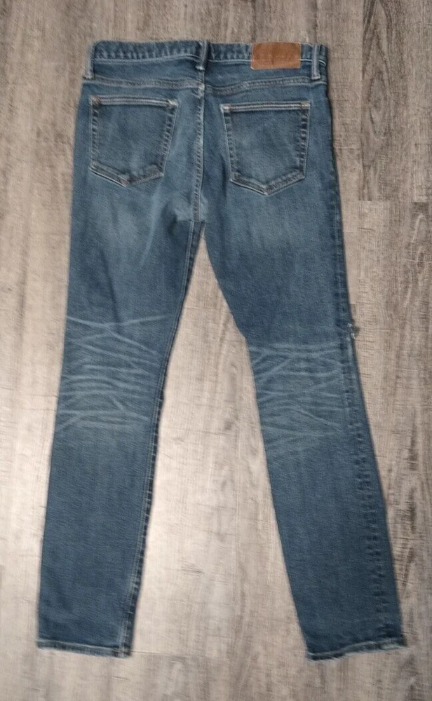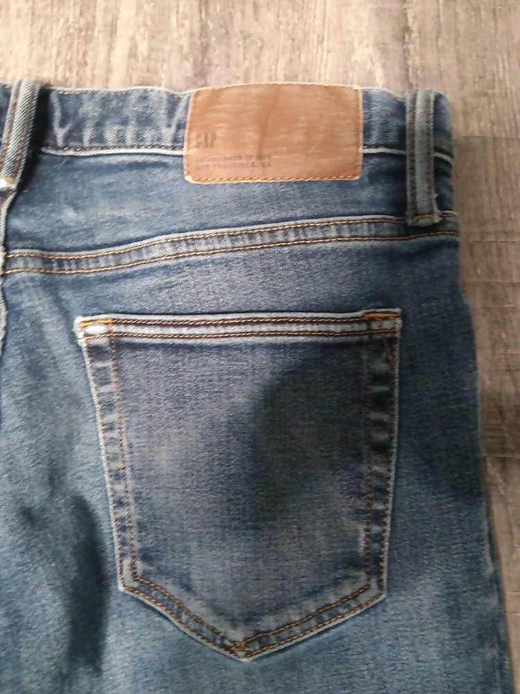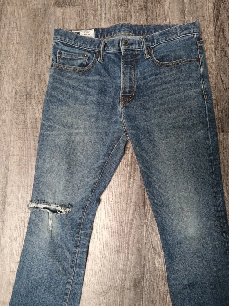 Elevate your fashion game with these stylish GAP skinny jeans in size 31 x 30. The dark wash blue denim fabric is perfect for any occasion and the distressed and ripped accents give it a trendy edge. The zip closure and button accents add a touch of sophistication to your outfit. Crafted from a comfortable cotton blend, these jeans feature pockets to store your essentials. The GAP 1969 model is designed to fit slim and is perfect for a preppy look. These jeans are a must-have addition to your wardrobe and are sure to turn heads.