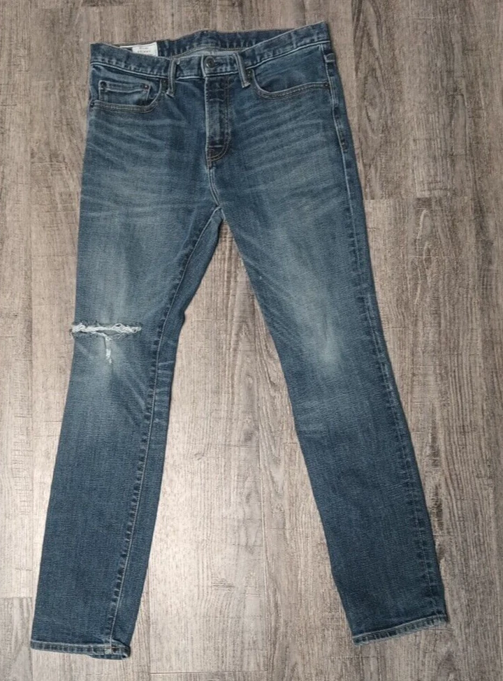 GAP Skinny Jeans Men's Size 31 X 30 Dark Wash Blue Denim Distressed Ripped
