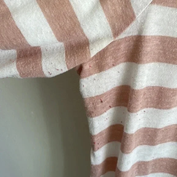 This GAP striped maternity top in size large is perfect for expecting mothers who want to stay stylish and comfortable. The 3/4 sleeves and multicolor stripes make it a versatile piece that can be dressed up or down. The brand is known for its quality and durability, ensuring that this top will last through multiple wears. Pilling under arms (see photo).