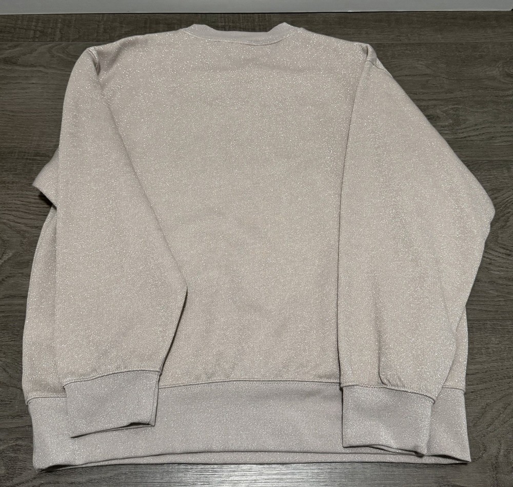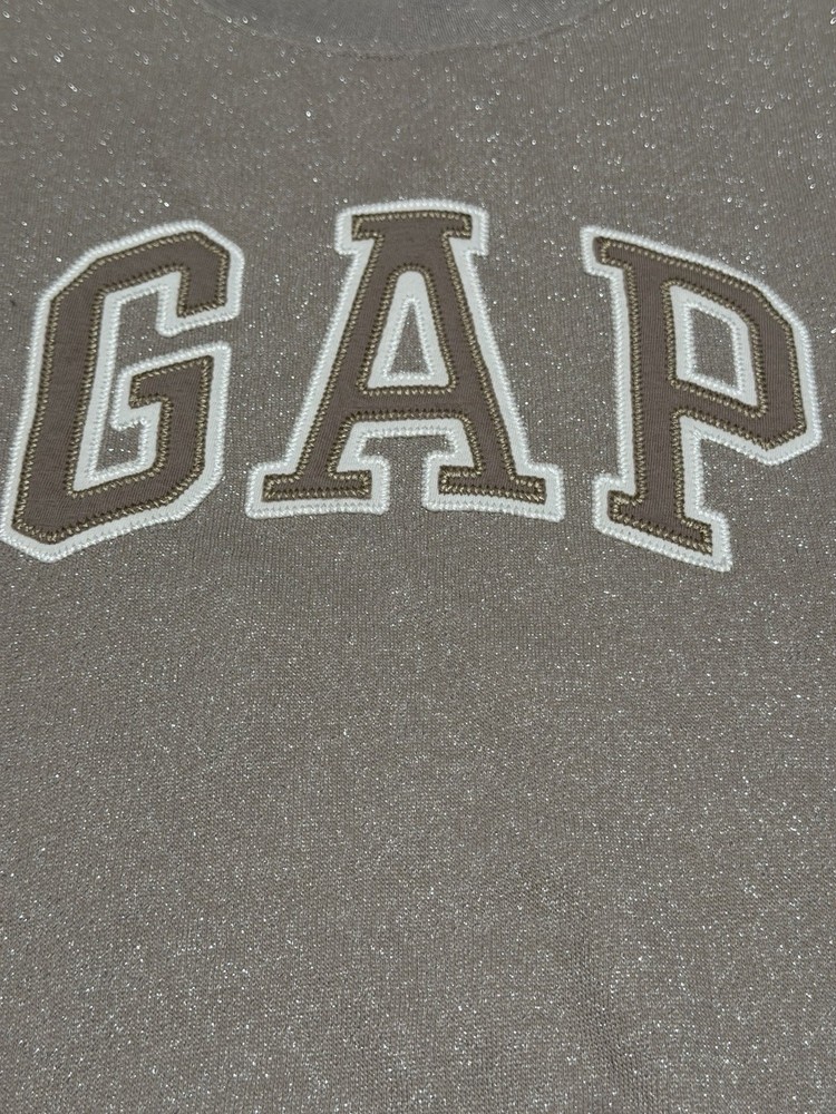 The Gap Women's Sweatshirt in brown, size M, features a stylish spellout design with glitter accents, making it a glamorous choice for activewear. This pullover sweatshirt is perfect for adding a touch of sparkle to your casual look, whether you're hitting the gym or running errands. Made by Gap, known for its quality and stylish clothing options, this sweatshirt combines comfort and style for a versatile addition to your wardrobe.