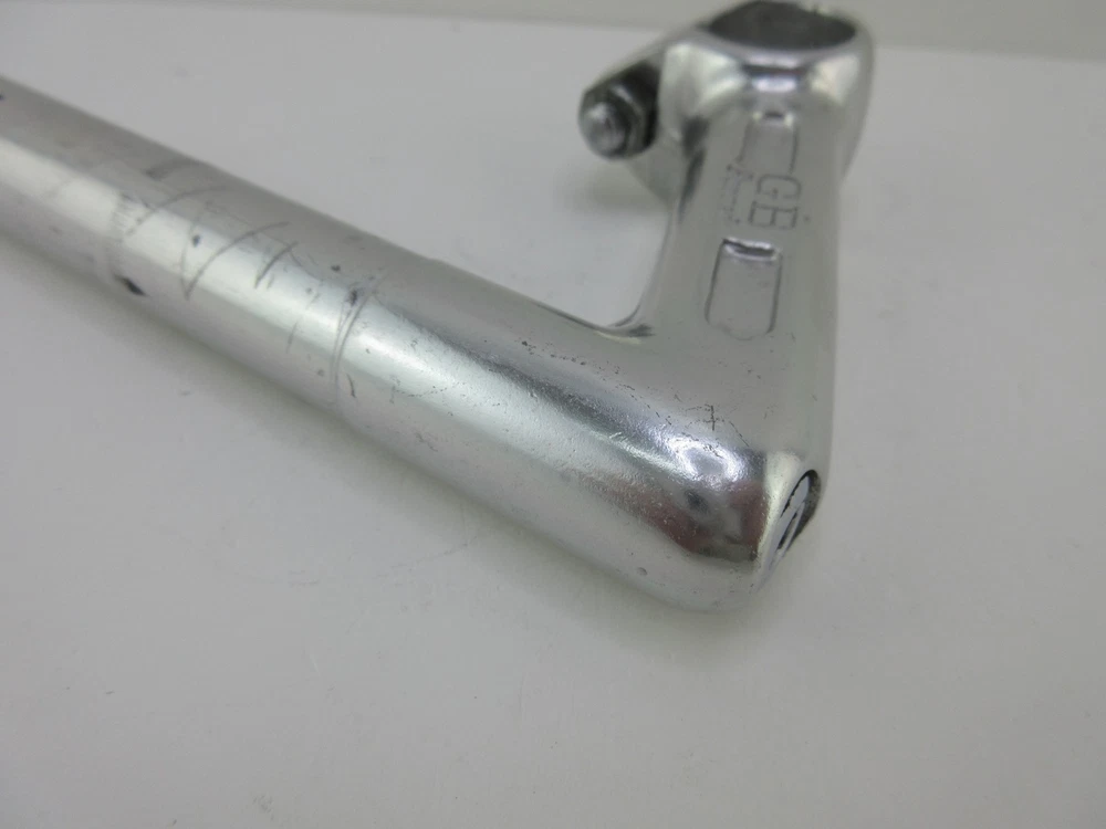 GB Forged Quill Stem 80mm Reach 22.2mm Vintage Road 11.1oz British Made This vintage GB (Gerry Burgess) Forged quill stem features an 80mm reach and a standard 22.2mm quill diameter. British-made and clearly stamped with the "GB Forged" logo on the extension, this stem utilizes a classic expander wedge system and a single-bolt handlebar clamp. The quill is stamped with the "British Made" mark, and the weight is 11.1 oz. This is a used bike part and may show signs of use, including surface scratches, minor oxidation, and pitting on the alloy body and steel hardware. The photos are of the actual item you will receive. Please review all photos to assess the physical condition.