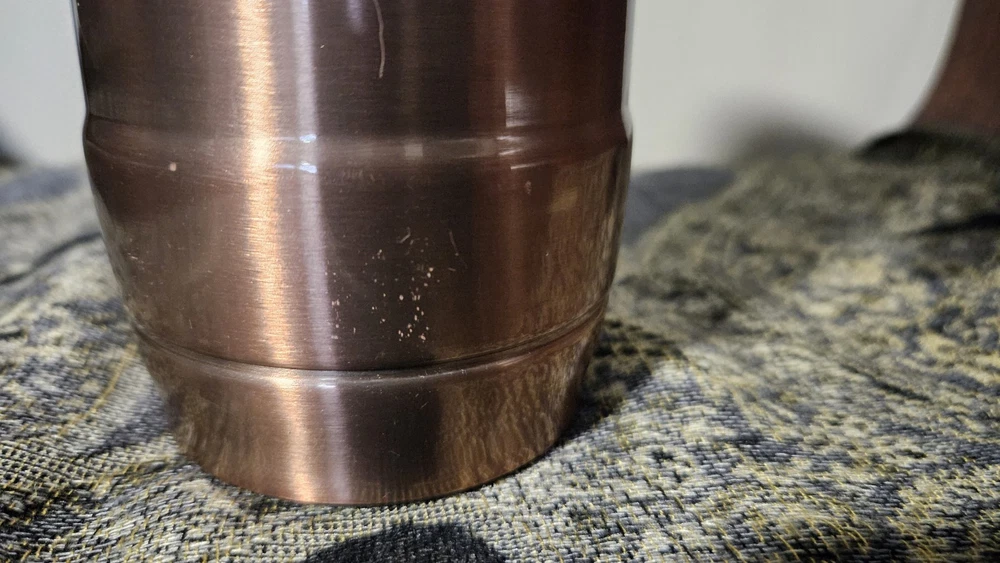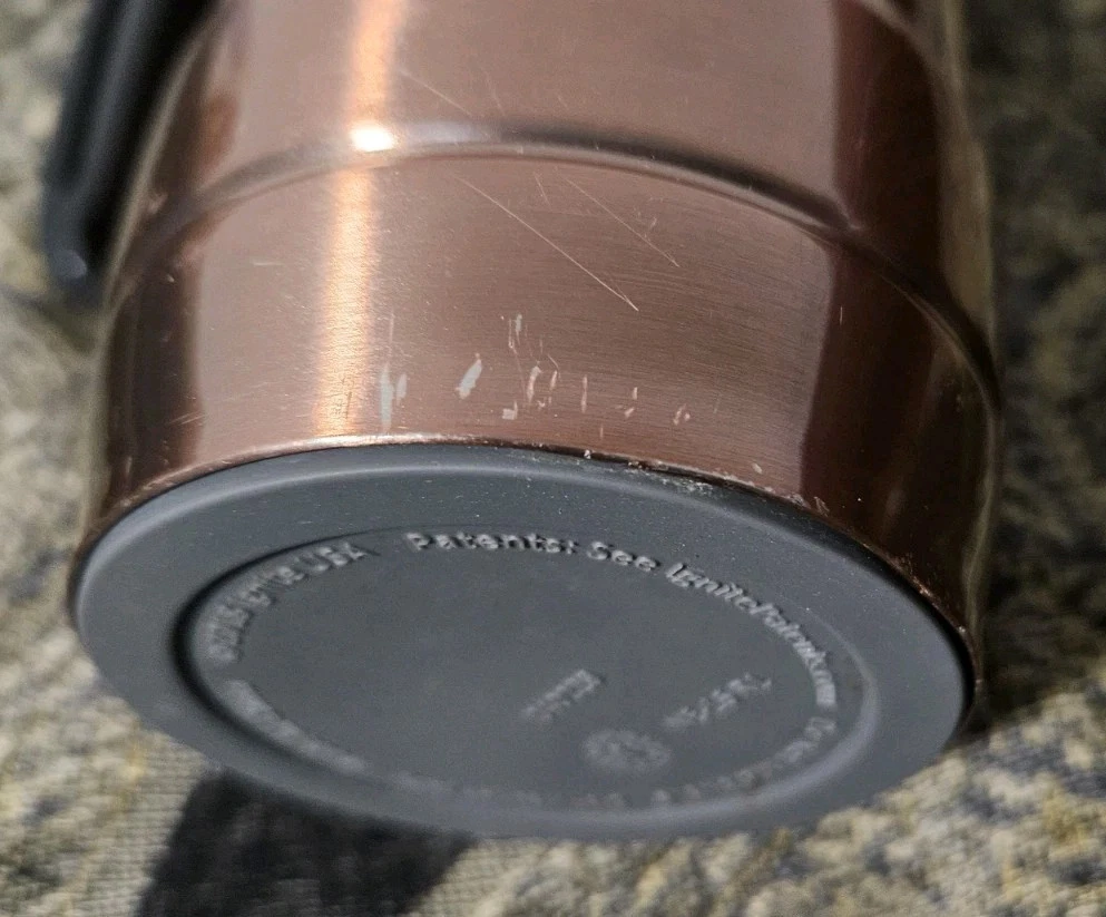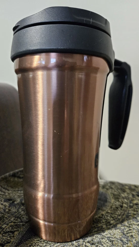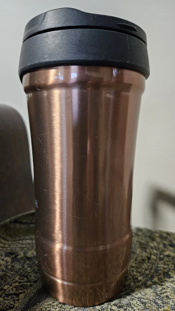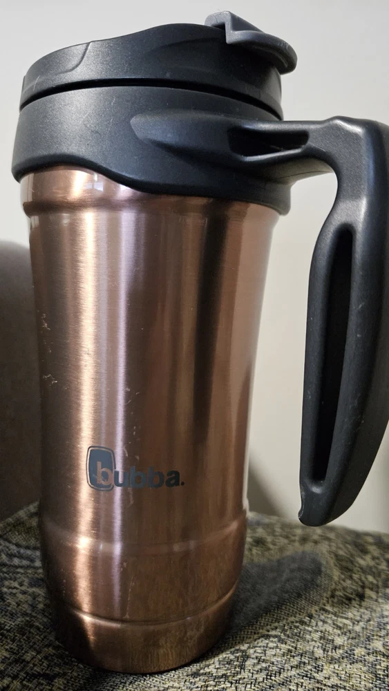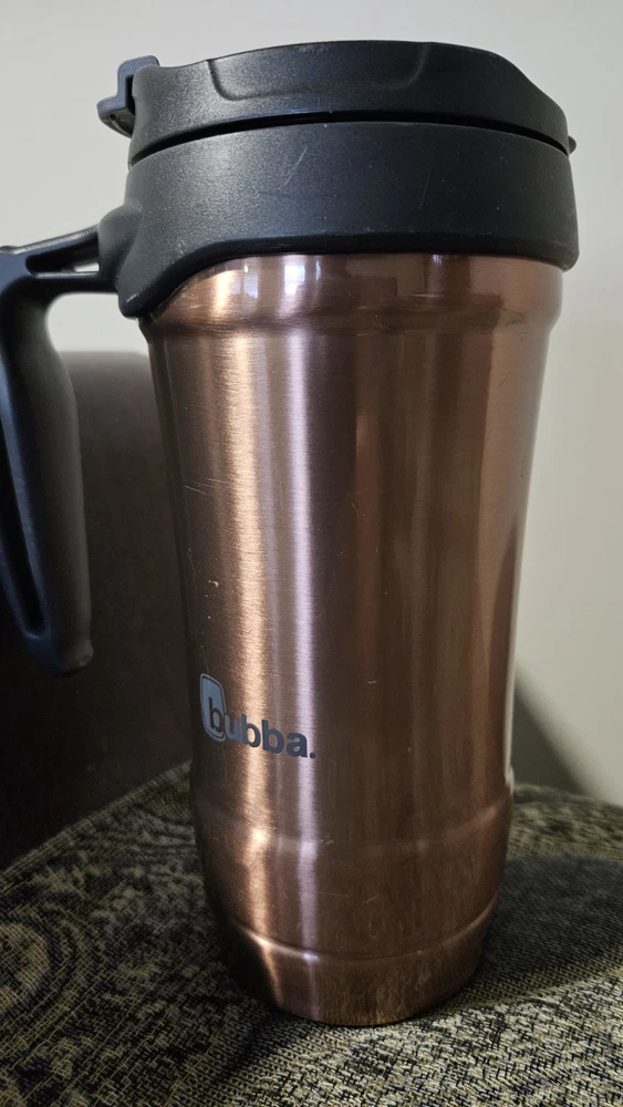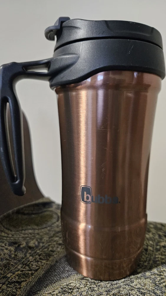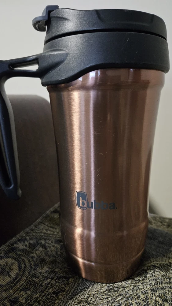 This 18 0z Bubba Hero Stainless Steel Vacuum Sealed Tumbler in Rose Gold is in good used condition with a clean inside, clean and spotless lid, and copper exterior that has some markings on it. The cup does have a shiny finish and when your normal distance away from the cup, I level to hand level, he really only see a couple of the spots. Please remember that the pictures were taken only a couple inches away from the cup for clarity and I feel like the up close pictures over exaggerate the markings. When you look at the bottom of the cup, where the nonslip silicone circle meets the copper circle, you can see that the mug was probably dropped. I'm not going to use the word dent, because when the mug is standing upright, there is nothing that looks like a dent. It's only when you look at the cup upside down that you see a slight variation in the copper Circle where it meets the silicones circle. Check out my pictures for all details. Free shipping included. Drinks stay hot up to 6 hours or cold up to 24 with double wall vacuum-insulated stainless steel. Lid screws on. Flip top lid snaps in place whether open or closed. Spill proof. Nice sized handle for a good grip. Silicone on the bottom to make it nonslip. Top rack dishwasher safe. I only ship to the contiguous 48 US states. Please do not purchase if you are from alaska, hawaii, or another country, as I will have to cancel your order. I do my best to more than adequately describe my items and provide as many pictures as allows, so that you know exactly what you are purchasing. No returns for this reason. Thank you and check out my store for other reasonably priced items!