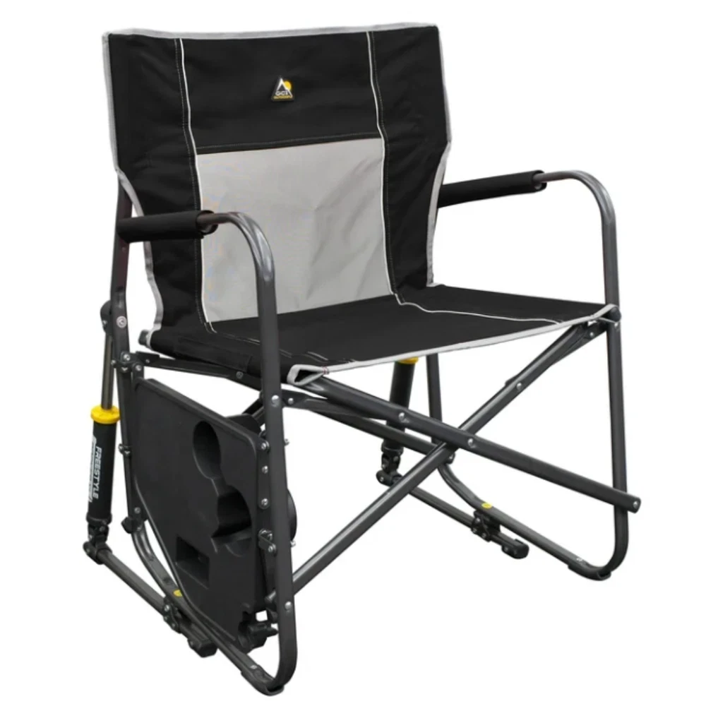 WE SHIP WITHIN 3-10 DAYS FROM USA We don’t ship items to PO box addresses, warehouse Free Shipping – Free Returns – Money Back Guarantee If you have any problem with the product, PLEASE contact me directly via eBay message, Please do not open a dispute because we cannot help if you open a dispute. Thank you very much! GCI Outdoor Freestyle Rocker XL with Side Table Oversized Rocking Camp Chair About this item Product details Extra room meets extra convenience in the GCI Outdoor Freestyle Rocker XL with Side Table. Featuring patented Spring-Action Rocking Technology for a smooth rocking motion, a wider seat with an increased weight capacity of 400 lbs., plus an integrated table, it’s the perfect combination of comfort, functionality and durability. The ergonomic design promotes a natural seated position, with padded armrests providing additional support when sitting down and standing up. A breathable mesh panel in the backrest enhances airflow to keep you cool and dry, while the foldable side table—with a built-in beverage holder, snack space, and a phone pocket—keeps essentials within reach. The durable, powder-coated steel frame features Eazy-Fold Technology for effortless setup and closure, along with a convenient carry handle for easy transport to all your outdoor activities. Patented spring-loaded shocks for a smooth rocking motion Wide seat for a spacious place to sit back and relax Padded armrests for all-day comfort and support Breathable mesh backrest for continuous airflow Foldable side table with beverage and phone holders Eazy-Fold Technology for safe and simple opening and closing Fold-flat design for easy storage and transportation Convenient carry handle for easy portability Weight capacity: 400 lbs. Item weight: 14.5 lbs.