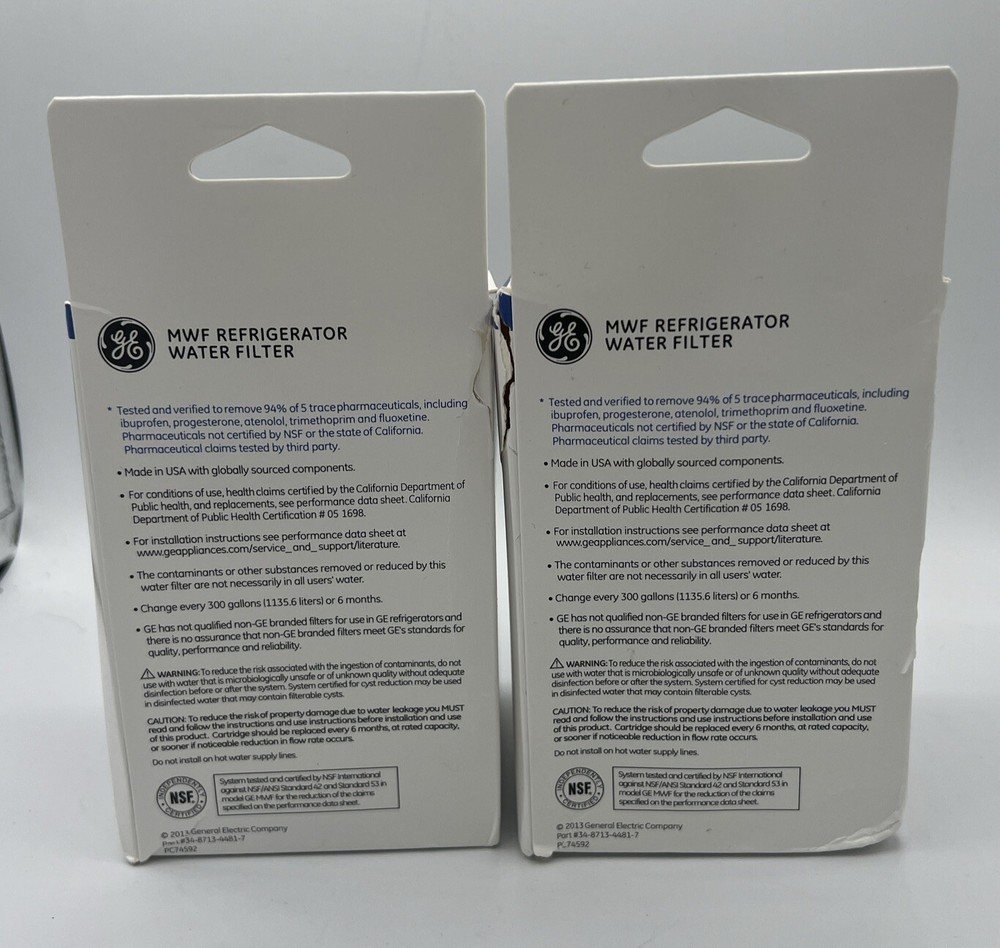 GE MWF MWFP GWF 46-9991 Refrigerator Water Filter Replacement Lot of 2 New