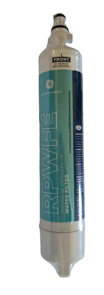 GE RPWFE | Certified to Reduce Lead, Sulfer, and 50+ Other Impurities | Replace Every 6 Months for Best Results, 1 Count (Pack of 1), White This filter is new and never used. The filter is sealed in plastic from the manufacturer. Ships in original box which is not in perfect condition. Free shipping. Ships same day or next day. Have 30 days to return the item. Genuine RPWFE Refrigerator Water Filter OEM water filter comes from GE Appliances and is compatible with select French door refrigerators to provide premium filtration for your water. GE Guaranteed Fit - Fits select GE French door refrigerators. Premium Filtration - This filter is certified to reduce chlorine-resistant cysts, lead, select pharmaceuticals, and 50 other impurities often found in water. Pharmaceuticals Reduction - Our filter reduces select pharmaceuticals from water, including ibuprofen, progesterone, atenolol, trimethoprim, and fluoxetine*. (*Impurities not necessarily found in all users’ water.) Easy Filter Replacement - You don’t need any tools or to turn off the water to replace these cartridge filters inside your refrigerator. Six-Month Filter Life - For best filtration results, filter cartridge should be replaced every six month or 300 gallons of water filtration.