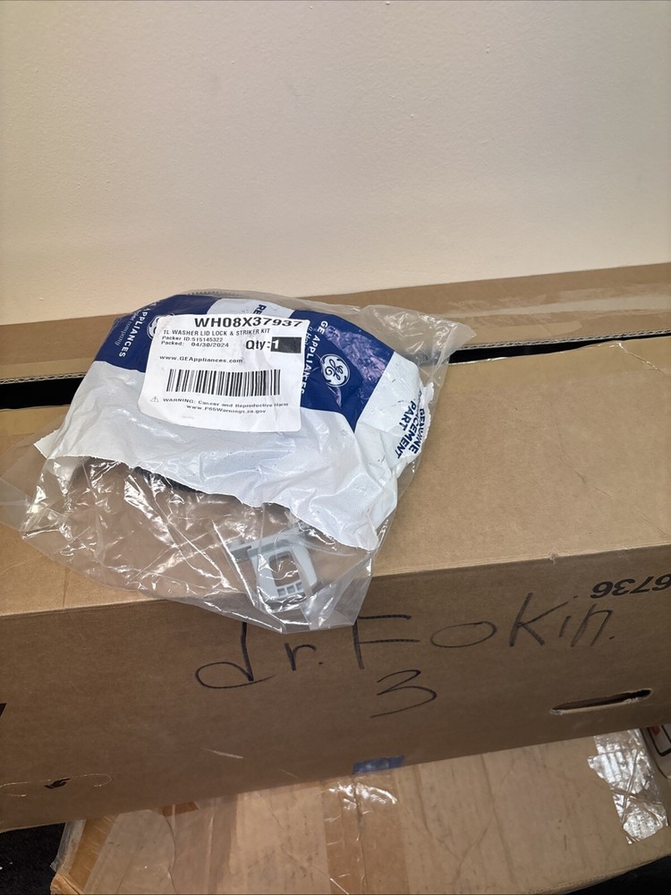 This is a GE Washing Machine Door Lock with model number WH08X37937, designed as a replacement part for GE clothes washing machines. It is manufactured in the United States and is compatible with specific GE models. The product features a door lock mechanism for ensuring the secure closure of the washing machine during operation.