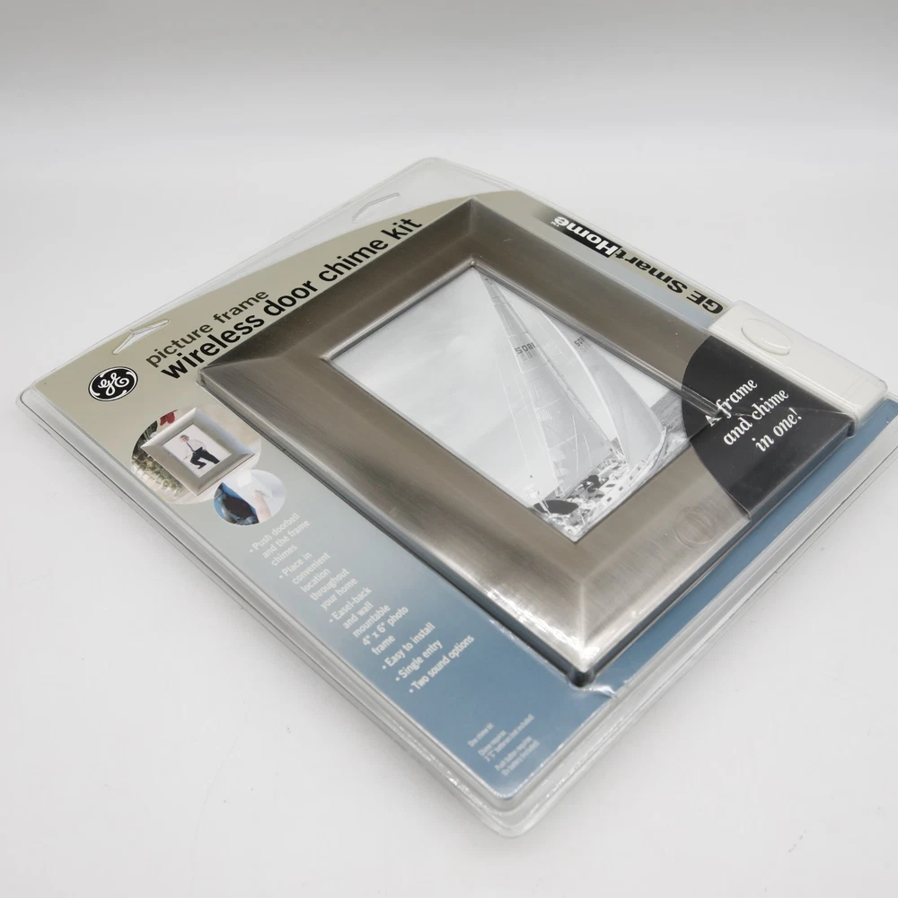 The GE Smart Home Picture Frame Wireless Portable Door Chime Door Bell Kit is a new and innovative addition to your home. This door chime, made by the trusted brand GE, is wireless and portable, making it easy to install and use in any room of your home. The chime features a bell to alert you when someone is at your door, perfect for staying connected to your home while on the go. Suitable for any home, this door bell kit is a convenient and stylish way to enhance your home security.