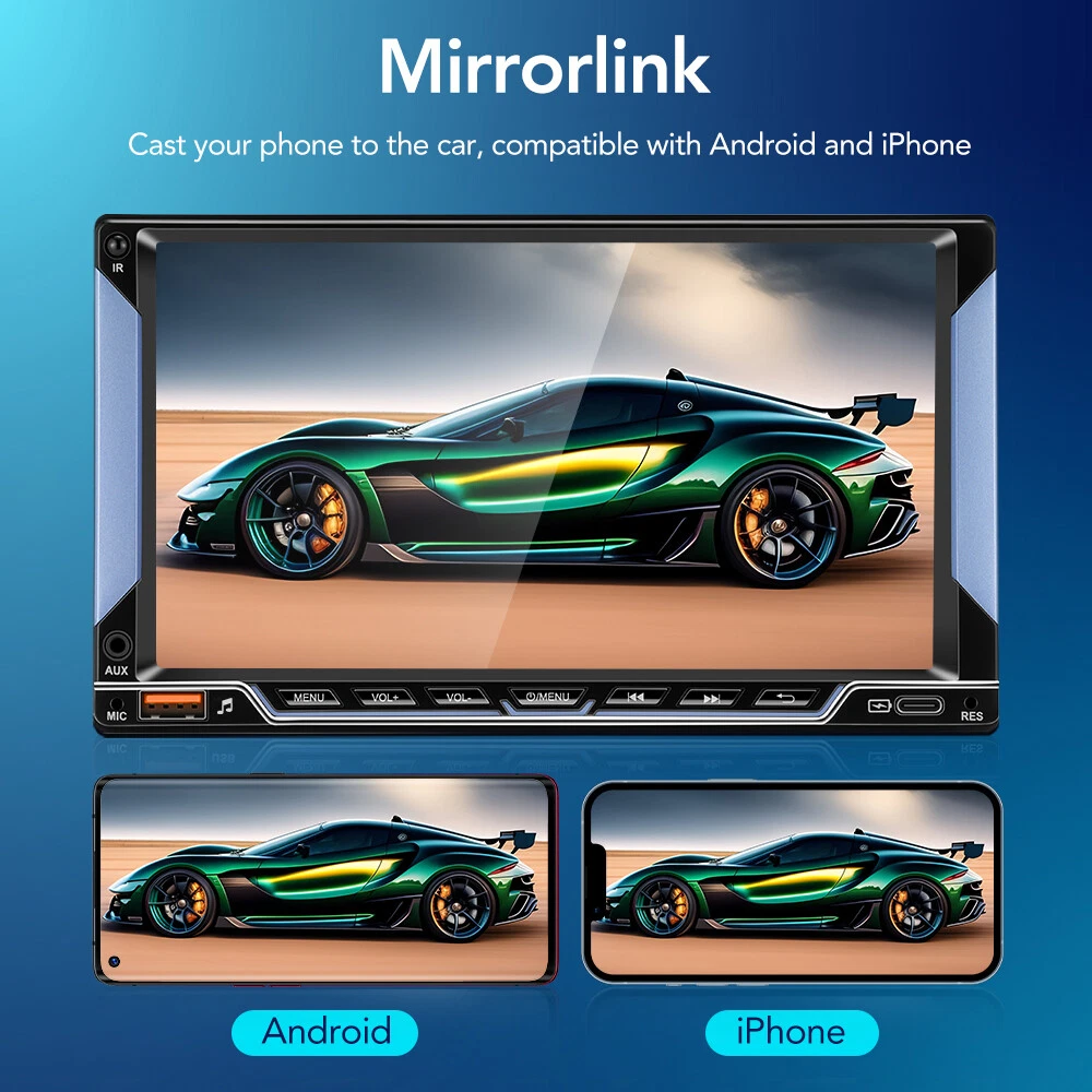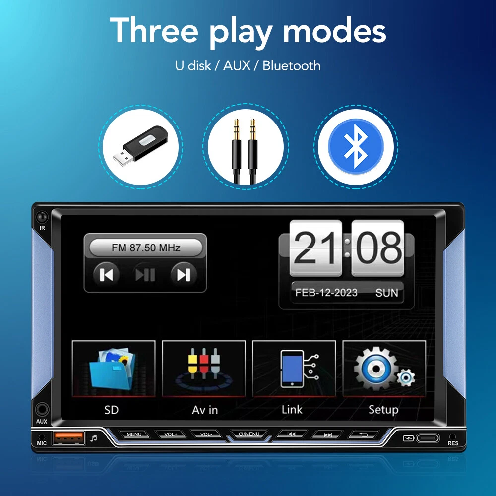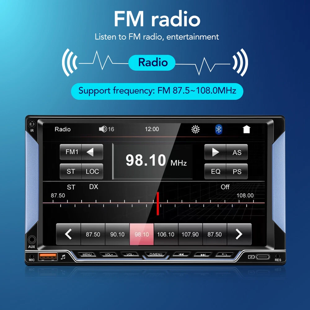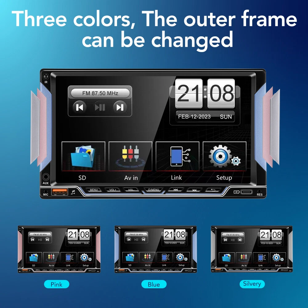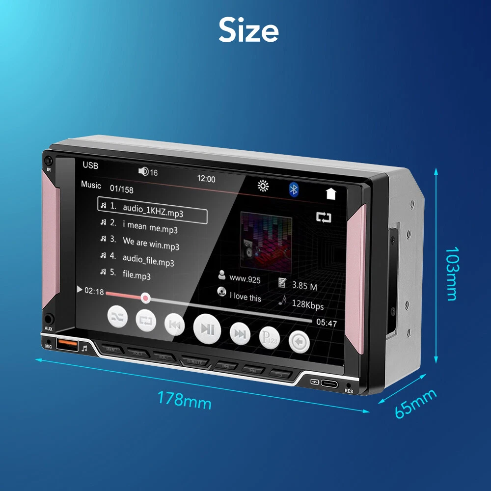 Specification: OS: WinCE Screen size: 7 inches Screen resolution: 800*480 Phone screen mirroring: supports (for iPhone/Android phones) GPS navigation: not supported Radio band: FM single band Radio Frequency : 87.5-108 MHz Backup camera input function: supports but camera not included Reversing detection method: tail line detection Brake reminder function: yes Steering wheel control function: supports Bluetooth function: supports Bluetooth version: 5.0 USB interface: yes Reset button: yes RCA jack: 2-channel video output, 1-channel backup camera input, 2-channel audio output, 1-channel video input Package included: 1 X Car Radio 1 X Power Cable 1 X Speaker Cable 2 Sets X Trim Strips 1 X Remote Control 1 X Manual Free GiftποΌ1 X 12LED reversing camera GEARELEC 2 DIN Car MP5 Player 7" Bluetooth Car Stereo Radio HD Touch Screen FM Feature: π Radio π Supports reading USB flash drives (audio/video/picture) π AUX function π Bluetooth function π Rearview camera input function π Original car steering wheel learning function π Phone screen mirroring function (supports for iPhone and Android phones) π Colorful button lights π USB Type C port for charging phones/tablets π Equipped with 2 sets of spare trim strips with different colors, change its appearance arbitrarily Specification: OS: WinCE Screen size: 7 inches Screen resolution: 800*480 Phone screen mirroring: supports (for iPhone/Android phones) GPS navigation: not supported Radio band: FM single band Radio Frequency : 87.5-108 MHz Backup camera input function: supports but camera not included Reversing detection method: tail line detection Brake reminder function: yes Steering wheel control function: supports Bluetooth function: supports Bluetooth version: 5.0 USB interface: yes Reset button: yes RCA jack: 2-channel video output, 1-channel backup camera input, 2-channel audio output, 1-channel video input Front AUX audio input: Yes Video decoding format: H.264 DIVX HD (720P/1080P) AVI/FLV/MKV/RMVB/MPEG/ASF/TS/H264/QT Audio decoding format: MP3/WMA/AAC/APE/OGG/M4A/RA/WAV Picture format: JPEG/PNG/BMP/GIF Language: English, French, Simplified Chinese, Japanese, Polish, Spanish, Portuguese, Turkish, Russian, Czech, Italian, Arabic, German, Indonesian Working temperature: -20β~+70β Wiring diagram: Note: There may be slight size deviations due to manual measurement, different measuring methods, and tools. The pictures may not reflect the actual color of the item because of different photographing lights, angles, and monitors. Package included: 1 X Car Radio 1 X Power Cable 1 X Speaker Cable 2 Sets X Trim Strips 1 X Remote Control 1 X Manual Payment Delivery details Return Feedback Contact us Payment * We accept PayPal only * Please verify your address during checkout. We are not responsible for any wrong or undeliverable addresses. * If there is anything wrong with the checkout or you need us to combine the shipping, please kindly feel free to contact us. Delivery details 1. Items are generally shipped out the next business day after your payment has been cleared (Sat. Sun. excluded.) 2. The shipment usually takes 3-5 business days (Saturday and Sunday excluded), if you need the item urgently, please contact us for detail before purchase. * We Ship to Payment address ONLY. So please confirm shipping Address prior to your payment. We are not responsible for any wrong or undeliverable addresses. Return Products with quality problem in 30 days can be returned and refund /replaced (Item in resalable condition) Products with quality problem in 1 year can be returned and repaired. (For more details, please read our warranty policy). Feedback Contact us if you have any question, please give us a chance to serve you, negative feedback couldnβt solve anything, communication Please! Contact us Welcome back to our store! Customers satisfaction is our top priority.