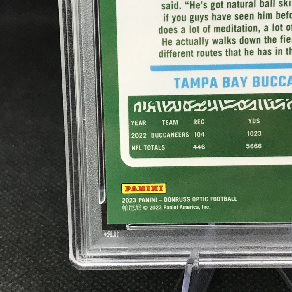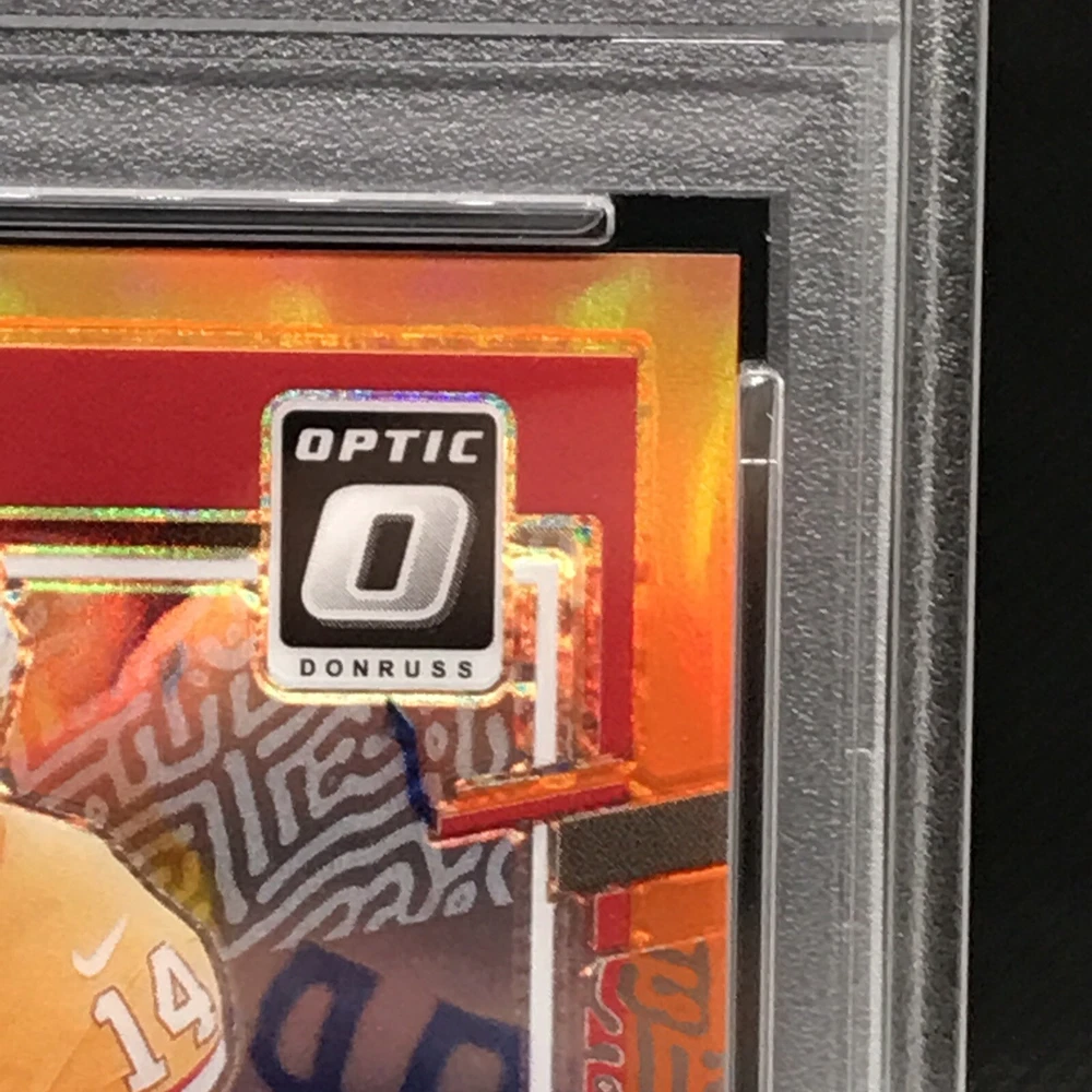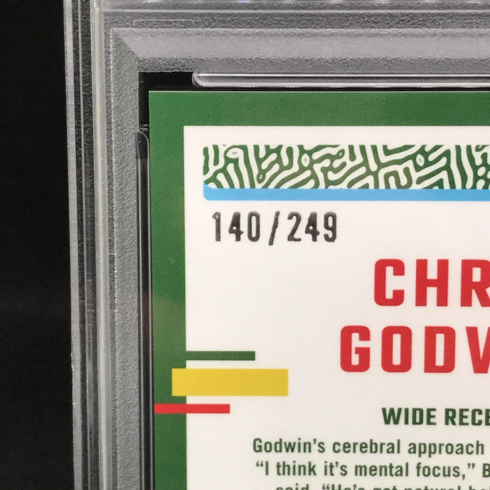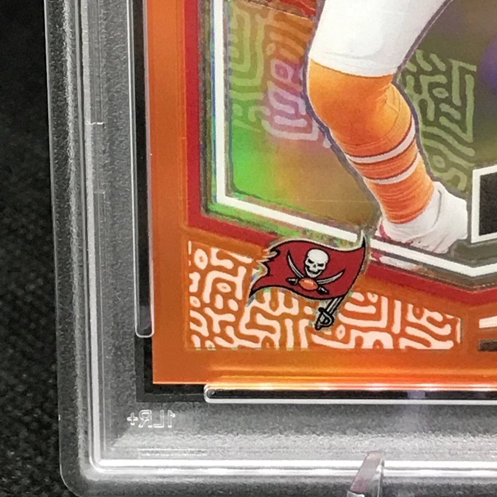 This rare and highly sought-after sports trading card features Chris Godwin of the Tampa Bay Buccaneers in a limited edition, exclusive collectors' edition. The card is perfectly graded at a PSA 10, ensuring its authenticity and quality. It boasts a stunning orange prizm color match, hologram, and serial number, making it a true gem for any collector or fan. The card is part of the 2023 Donruss Optic Football set and is certified with the number 100073277. With its short print, parallel/variety, and collectors edition, it's a must-have for any avid collector or fan looking to complete their collection. Don't miss out on this opportunity to own a piece of NFL history.