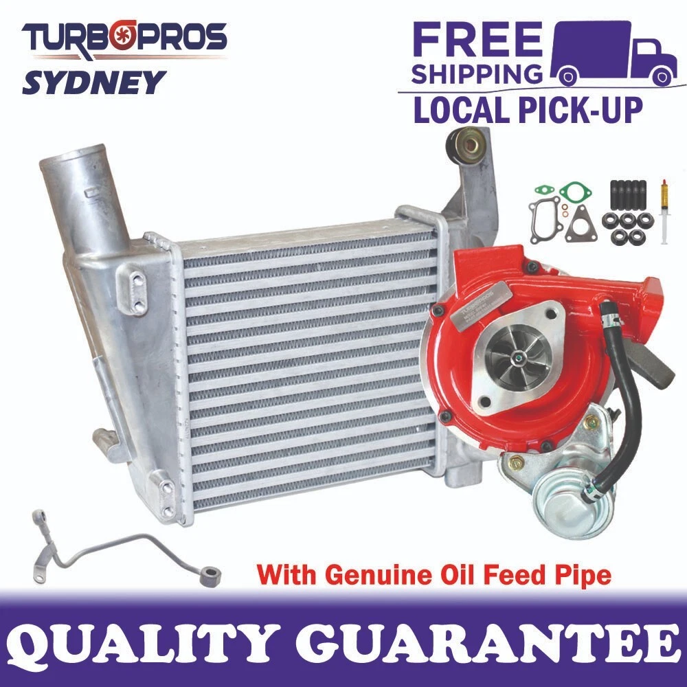 GEN1 High Flow Turbo Charger With 63mm Intercooler And Genuine Oil Feed Pipe For Nissan Navara D22 YD25 2.5L This Is A GEN1 High Flow Turbo Charger With Aluminium Intercooler Kit. With A Billet Turbo Providing Better durability, A Better Intercooler Providing Better Cooling And Less Pressure Drop, This Upgrade Turbo & Intercooler Kit Is Designed To Bolt Straight On To Give Your Vehicle The Best Performance With No Modification And Tuning Required. What’s Included: 1 x GEN1 High Flow Turbo Charger 1 x Aluminium Intercooler 1 x Turbo Charger Gasket Kit 1 x Turbo Charger Stud Kit 1 x Turbo Charger Pre Lubricant 1 x Genuine Oil Feed Pipe Brand: Turbo Pros Condition: Brand New Intercooler Core Size: 210 x 240 x 63mm Vehicle Application Nissan Navara D22 YD25 2.5L OEM Part No 14411-MB40B / 14411MB40B / 14411-VM01A / 14411VM01A / 14411-MB40C / 14411MB40C Turbocharger Part No VN4 / VB420119 / VA420119 / VA420125 Turbo Pros GEN1 Turbochargers are high flow, engineered to improve turbo efficiency and fatigue life. It is modified with specifically designed aluminium billet compressor wheel to increase air flow and boost response. Turbo Pros upgrade intercoolers have a thicker core and increased core surface area than the OEM intercoolers, which allow for more effective cooling of the charge air entering the engine. This will improve the bottom end torque and top end horsepower, make the power come in a lot sooner and stronger. Oil feed pipe supplies engine oil from the engine block directly to the turbo's bearing system, securing lubrication and cooling for the turbo shaft. Oil return pipe evacuates engine oil from inside the turbo and maintain flow through it to the oil pan. When performing a major repair on a vehicle's turbocharger, the oil drain pipe and the oil feed pipe must be kept in perfect condition to ensure good lubrication of the turbocharger, it is necessary to maintain a constant and adequate flow of lubricant. We recommend fitting a new oil feed & return pipe when replacing or refitting a turbo. Free Postage. Pick Up Available. Please confirm that your original part / OEM number matches up with one of the part numbers above. Please send us an eBay message if you have any questions, we will get back to you ASAP. Thank you.