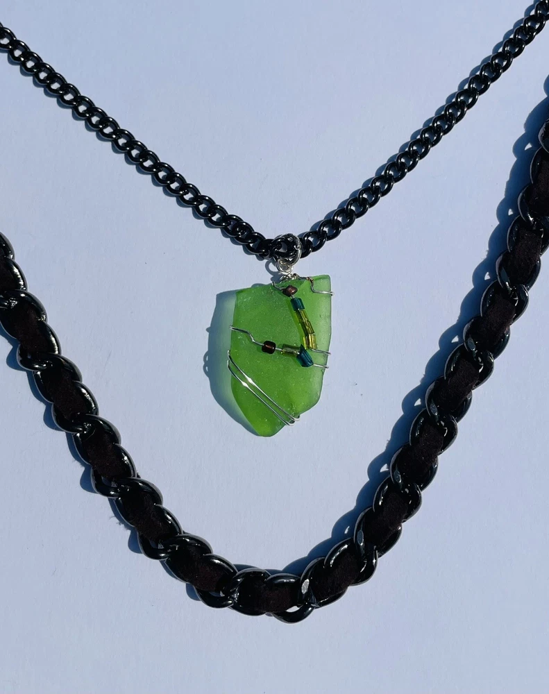 First strand 17” with 3” extender, second strand 20” One of a kind, artisan made from beachcomber’s genuine sea glass collection. Nickel-free, tarnish resistant wire for years of wear, genuine leather, glass seed beads, lobster clasp. Bid with confidence. Long term seller with positive feedback. All items are from a smoke and pet free environment. In order to keep shipping cost to a minimum, I do not accept returns, so please see the pictures and read the item description well. Please ask any questions prior to bidding or purchase. I only ship to the United States, lower 48