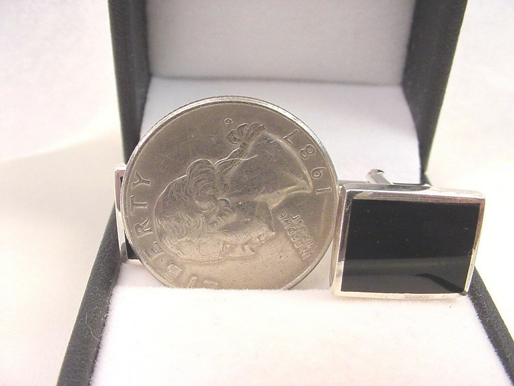 Solid Sterling Silver...marked as shown in photos with the 925 Silver content hallmark and a maker symbol hallmark Genuine Natural Black Onyx Gemstone Spring loaded flip lever closure mechanism Please ask any questions.... We'll try our best to answer promptly...