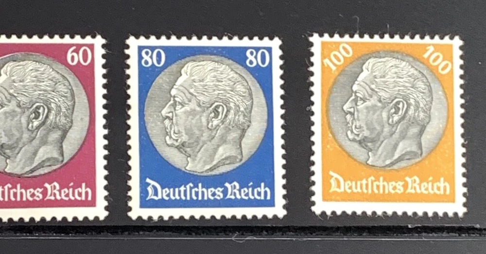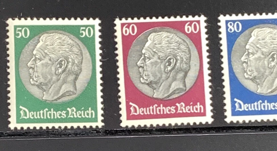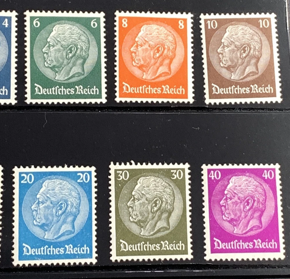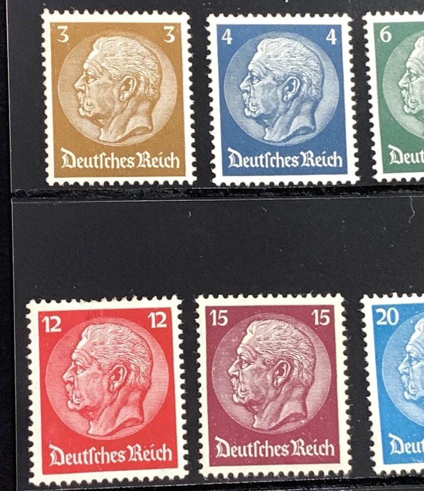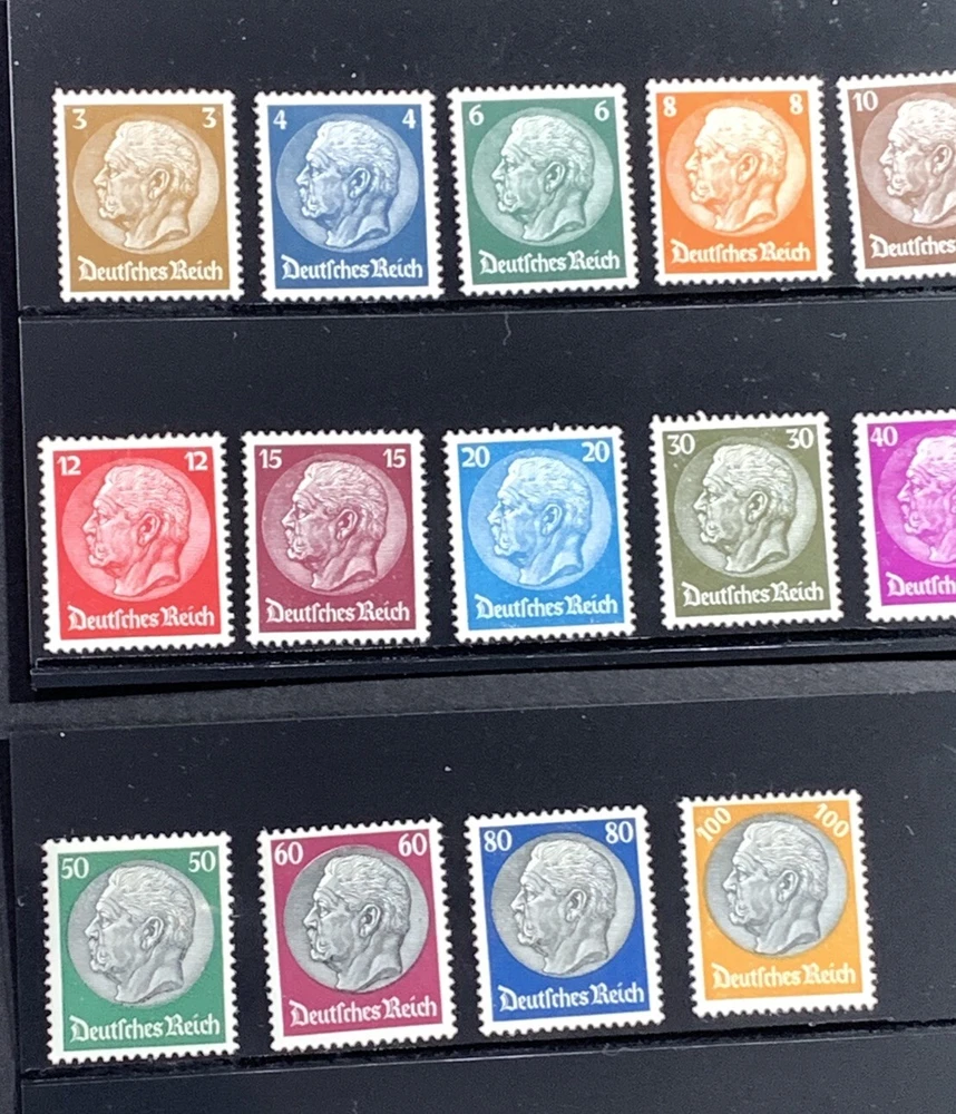 GERMAN REICH 1933 Hindenburg. SC #401-414 (Mi.482-495). MH/VF CV $1,560 If bidding or buying outside the US - Please let me know. I know it can be expensive to ship out of country - I may be able to provide a discount depending on destination. Feel free to ask if you have any additional questions, require additional photos, or additional information. Shipping can be combined on any item I sell. (see my store Rio-Collect (https://www.ebay.com/str/riocollects). For multiple orders, prices may also be combined and lowered accordingly (i.e. Prices rounded down). Please Ask Questions if there any concerns. I am always open to discussion on any purchaser or auction win. If you win this auction or purchase this item, Feedback is an important part of the Ebay experience. My goal is a satisfied customer, positive feedback and a five star experience. Please let me know if you are not satisfied before leaving negative feedback, I'm sure we can work it out. Cheers, Rio-Collects ______________________________________________________________________________________________ Although not officially certified by registered philatelic companies, all stamps in my auctions/sales were acquired through the Post Office or reputable stamp auctions/assayers. Unless otherwise noted, most other stamps were acquired through my father's collection and stamp dealership (Tex-Stamp) which had been in business over a 50 year period in South Texas. If you require documentation, feel free to ask. For philatelic auctions/sales, I use the following descriptions: SCV: Scott Catalog Value, MI: Michel Catalogue, NF: Nick Follansbee Catalog, Sk. Schatzes Catalog, Yag & Bash, SG: Stanley Gibbons Catalogue...Amongst others. Condition: Mint Never Hinged (MNH): Never hinged, usually with OG from Post Office (i.e like new) Mint Lightly Hinged (MLH): Hinge mark but no hinge remnants Mint Hinged (MH): Not Cancelled with hing or hinge remnants. OG - Original gum PH - Previously hinged H - Hinged DOG - Original gum, disturbed POG - Part original gum NG - Mint No gum NGAI - Unused, no gum as issued (special printing) USED - Used / canceled GEM - Perfectly-balanced margins Post Office Fresh (POF) Superb - Perfectly-balanced normal sized margins, POF XF/S - Not quite perfectly-centered, POF XF - Extremely well-centered margins, POF VF/XF - Almost extremely well-centered, POF VF - Very well-centered, POF F/VF - Margins reasonably clear on all sides F - Margins just clear on one or more sides Fine: A stamp that is not well centered but has a clear design and four margins. Average: A stamp that has no margin on at least one side, or where the design is cut into by the perforations VG/F - Perfs touch or cut stamp design slightly VG - Perfs cut into stamp design ______________________________________________________________________________________________ Feel free to ask if you have any additional questions, require additional photos, or additional information. Shipping can be combined on any item I sell (see my store Rio-Collect (https://www.ebay.com/str/riocollects). For multiple orders, prices may also be combined and lowered accordingly (i.e. Prices rounded down). Cheers, Rio-Collects