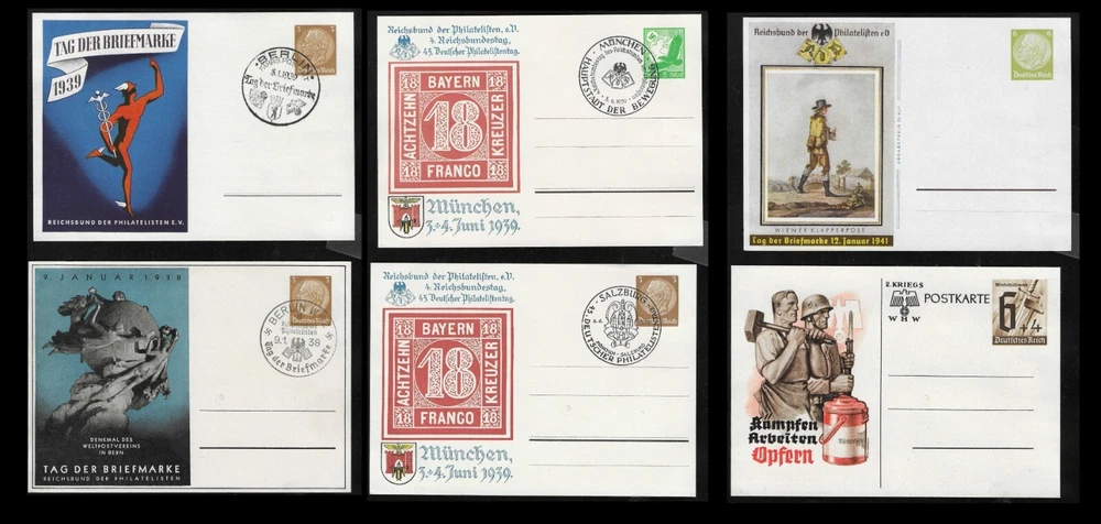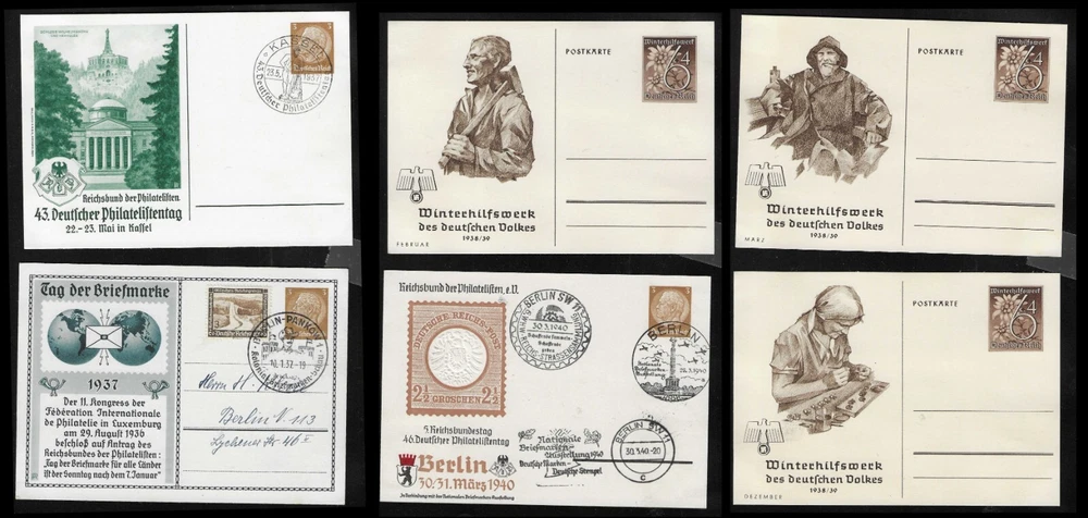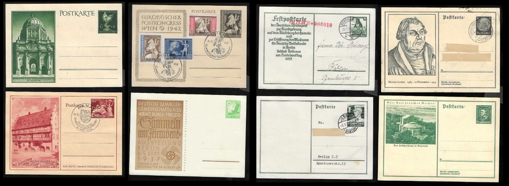 GERMANY 1933-42 COLLECTION OF 36+ PRESTAMPED POSTAL CARDS MINT & USED SPECIAL CANCELS MOSTLY GOV'T, SOME BEAUTIFUL PRIVATE PRINTED TO ORDER,MANY COLORFUL, SOME COMMON, OTHERS SCARCE.. VF CONDITION *** INTERNATIONAL SHIPPING QUOTED*** Thank you for viewing... Please email any questions you may have.... Take a moment and check out our other unique auctions !!! ***** Email us about signing up for our mailing list******* Exciting new items every day Philately - The Quiet Excitement Shipping We try to Ship Within 5 Business Days of Cleared Payment Will calculate international shipping PLEASE READ International Buyer's Shipping Instructions International shipping "" First Class Registered ENVELOPE " NO EXCEPTIONS ! ** Insurance, Registered mail or Confirmation/Signature Guarantee is included in the price of shipping for the USA only ** Our goal is to please our customers, provide quality and unique items, have successful transactions and earn positive feedback with a 5 star rating. We strive for accurate descriptions, quick turnaround, detailed communication, and reasonable shipping charges on every lot. Your feedback is important to us. If you feel anything about the transaction was less than 5 star, please give us the opportunity to rectify the situation Thank you The Staff at Henry Gitner Philatelists, Inc.