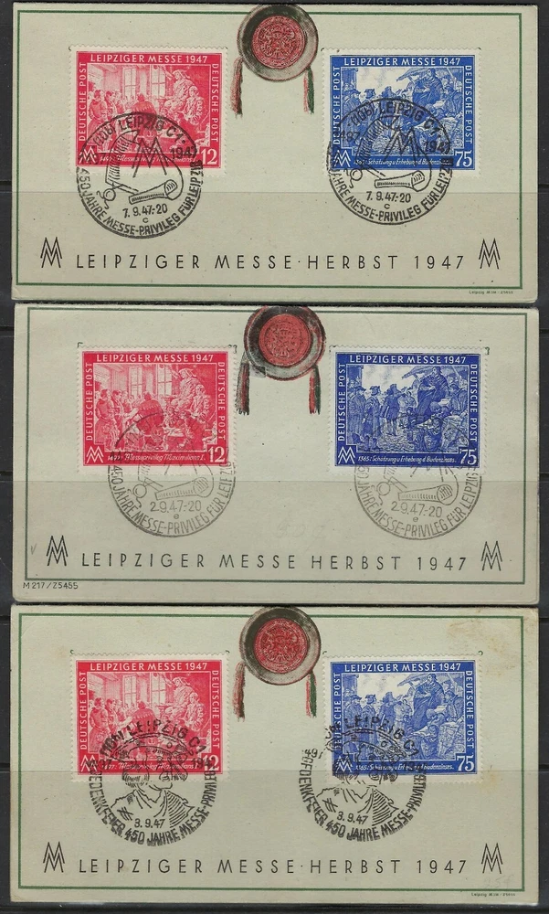 GERMANY 1947 LEIPZIGER MESSE COLLECTION OF 6 CARDS WITH SPECIAL FOUR CANCELS & ONE REGISTERED COVER PLEASE VISIT MY EBAY STORE : Filatco Stamps BUY 5 ITEMS SHIPPING & REGISTRATION IS FREE INTERNATIONAL BUYERS PLEASE NOTE: EBAY AND PAYPAL REQUIRE REGISTRATION FOR TRACKING INTERNATIONAL SHIPMENTS. EBAY CHARGES $12.61 FOR SHIPPING LABELS WITH TRAKING # US POST OFFICE CHARGES $14.95 FOR REGISTRATION # + POSTAGE BUYER HAS THE CHOICE OF SHIPPING FIRST CLASS MAIL WITHOUT TRACKING # FOR $2.50 . IN THIS CASE BUYER ACCEPTS RESPONSIBILITY IF ITEM IS LOST IN TRANSIT. Feel free to ask if you have any questions. PAYMENT WITHIN 2 DAYS IS APPRECIATED . FEEDBACK : I APPRECIATE YOUR BUSINESS AND MY TOP CONCERN IS TO MAKE SURE YOU ARE 100% PLEASED WITH ANY ITEM YOU PURCHASE. IF YOU HAVE A CONCERN OR A PROBLEM WITH INVOICE, SHIPPING OR ANY ITEM YOU RECEIVED PLEASE CONTACT ME FIRST BEFORE YOU LEAVE ANY FEEDBACK. I GUARANTEE YOU WILL BE 100% SATISFIED WITH THE TRANSACTION. I WILL CERTAINLY LEAVE YOU A POSITIVE FEEDBACK AS SOON AS I RECEIVE YOURS.