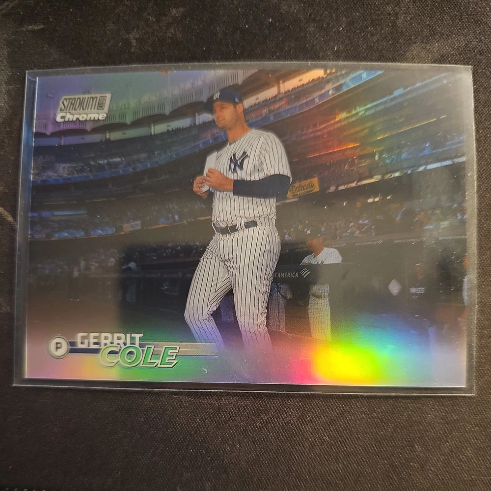 This is a rare and highly sought-after GERRITT COLE 2023 Topps Stadium Club Chrome #177 card for fans of the New York Yankees. The card features a stunning image of Gerritt Cole and is in near mint or better condition. It is perfect for collectors and fans alike who want to own a piece of baseball history. The 2023 Topps Stadium Club Chrome #177 is an ungraded card that comes from the Chrome insert set and is manufactured by Topps. It is a sports trading card that is perfect for any fan of the MLB and is sure to be a valuable addition to any collection. Don't miss out on this opportunity to own a piece of baseball history!