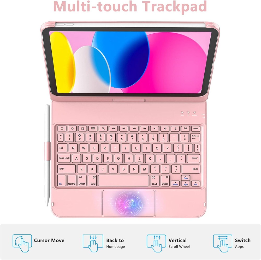 GGH Touchpad Keyboard Case for iPad 10th Generation,Multi-Touch Rose Gold Product Details Package Dimensions: 11.18 x 8.23 x 1.26 inches Item Weight: 2.03 pounds Manufacturer: GGH Language: English Item model number: 10th Gen 2022 10.9-inch Batteries: 1 Lithium Ion batteries required. (included) Brand: GGH Compatible Devices: iPad 10th Generation 2022 Apple 10.9-inch, Model: A2696, A2757, A2777. Connectivity Technology: Bluetooth Keyboard Description: Flexible Recommended Uses For Product: Office, Everyday Use, Personal, Student, Business Special Feature: Auto Wake/Sleep, Portable, Precision Trackpad, 360° Rotation Case, Rechargeable Bluetooth Keyboard Color: Rose Gold Number of Keys: 78 Style: Classic Material: Acrylonitrile Butadiene Styrene 【Precision Trackpad】For iPad 10th generation keyboard with Integrated multi-touch trackpad, edit documents, navigate apps and build presentations with unparalleled precision using a familiar multi-gesture keyboard trackpad 【Multi-Angle iPad 10th Case】The iPad 10th generation case rotates 360°Rotation and 180° Flip,offering multi-angle viewing. You can adjust the screen to any desired angle when you are watching videos, playing games or simply typing.This feature allows you to assume any posture or place your iPad anywhere you like without straining or being affected by reflections. At the same time, the keyboard case with pencil holder,compatible with Apple pencil 【Auto Wake/Sleep & Precise Cutouts】 Auto sleep and wake function protects your iPad battery life.The keyboard is reasonably well-spaced with concave keys and it enables to access all ports and buttons easily. The sturdy, lightweight iPad keyboard case keeps your iPad safe from scuffs and scratches so you can take it anywhere with total peace of mind 【Satisfying After-Sales Service】We provide unlimited customer service support and tech support. Questions will be responded to within 12 working hours. It is a must have for anyone with a ipad 13th Generation