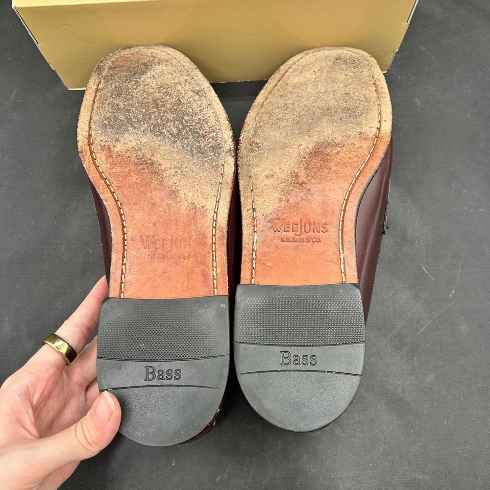 G.H. Bass & Co Weejuns Logan Mens 9 Burgundy Leather Penny Loafers Dress Shoes are in pretty good condition, with wear like creasing and sole rub from age and use. Please see Photos for Condition of Shoes. Color: Red Department: Men Style: Loafer Upper Material: Leather Pattern: Solid Features: Penny Keeper, Leather Lining, Comfort Insole, Slip On Type: Dress Outsole Material: Leather Insole Material: Leather Model: G.H. Bass Logan Keywords: G.H. Bass & Co, Weejuns, Logan, Penny Loafers, Mens Shoes, Burgundy, Leather Loafers, Dress Shoes, Classic Footwear, Business Casual, Comfortable Loafers, Slip On Shoes