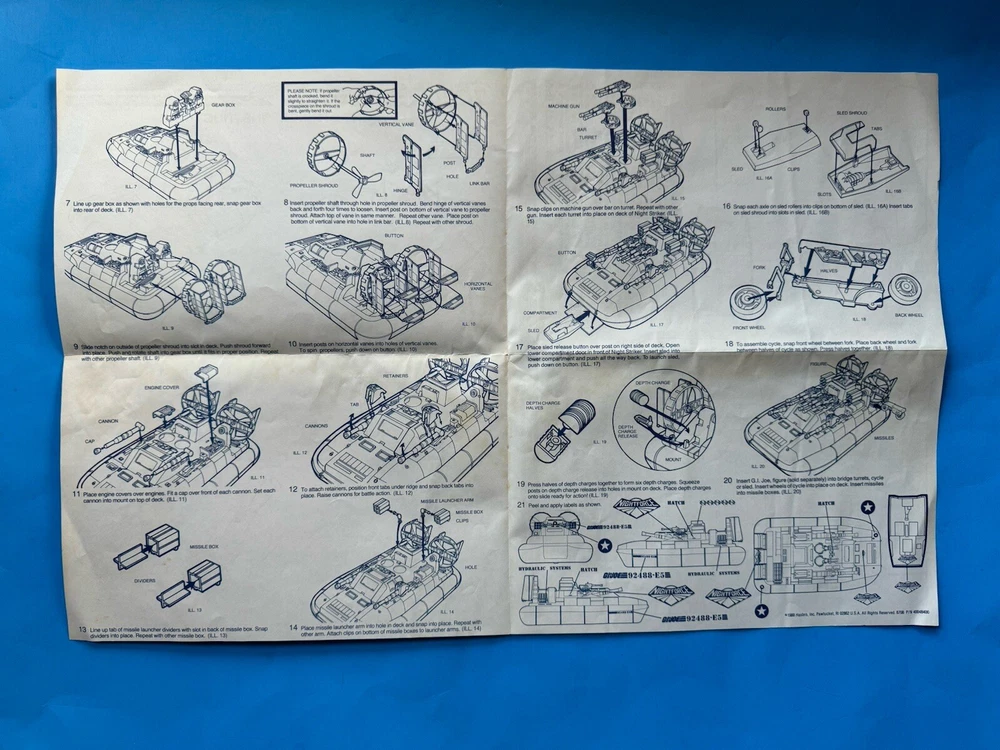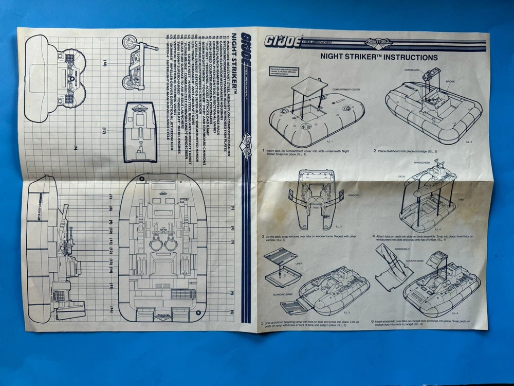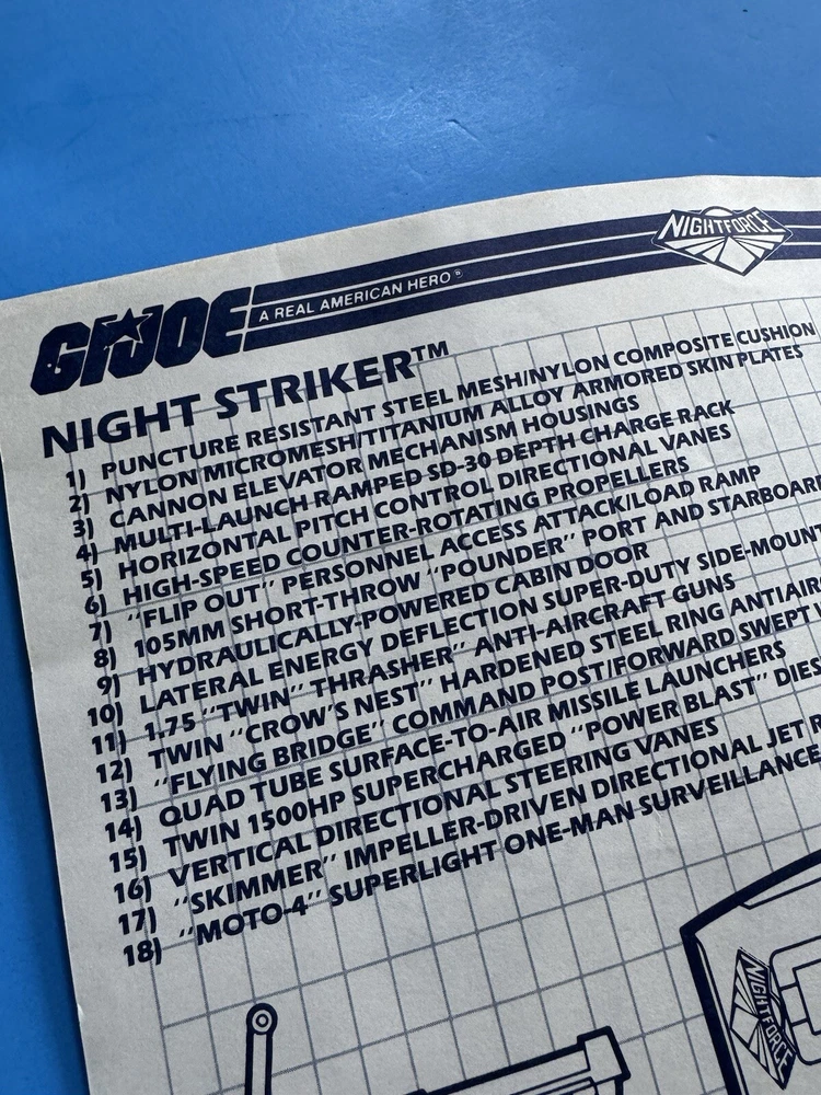 GI Joe 1988 Night Force Night Striker Hovercraft Intructions Vintage Part Nice!