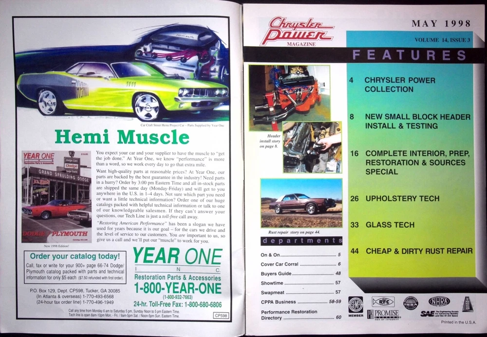 Take advantage of the magazine?s flat-rate shipping in the same package! Adding two or more to your shopping cart and checking out the flat rate will apply. Feel free to reach out if there are any problems, and I can always send you an invoice with the flat rate. CHRYSLER POWER MAGAZINE, MAY 1998 The magazine has minor wear; please look at the magazine photos. See the seller’s listings for full details and a description of any imperfections. We will be listing new magazines regularly; please follow our store. This magazine will be shipped in a vinyl bag to achieve the cheapest first-class rate due to the advertisement in the magazine; we can't ship media mail. MAKE AN OFFER by clicking the "MAKE OFFER" Button WE DO OFFER COMBINED SHIPPING ON ALL ORDERS. The magazine has minor visible wear . It may have very minimal identifying marks on the inside cover or outside. There are no missing pages, some creases, tears, or underlining/highlighting of text or writing in the margins. No matter what happens, If you need additional information on this product, feel free to contact us, and we will provide it ASAP.