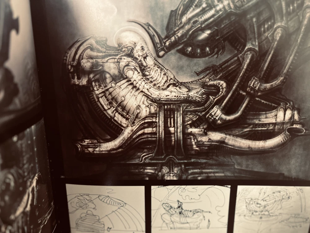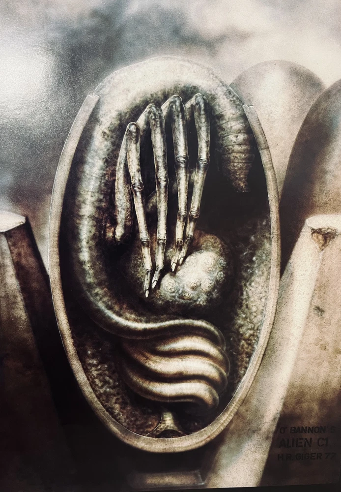 UP FOR AUCTION: GIGER'S ALIEN : THE FILM DESIGN by H.R. GIGER. Hardcover U.S. 1st Edition/ 3rd printing from 1991. Softcover U.S. 1st Edition/ 1st Printing from 1994. ISBN10: 0962344702, ISBN13: 9780962344701, [publisher: Morpheus International, Beverly Hills] Hardcover First Editionl/ THIRD printing (as stated in book). B&W and color Illustrations and Photos; Oblong 4to 11" - 13" tall; 76 pages; Early printing of the 1st edition thus, after the 1979 Big O edition ( The Swiss language edition, and true first ). Revised with additional material. Very large, square format. Lavishly illustrated throughout with color and B/W paintings and photographs, reproductions of Giger's graphic art for the 1st Alien film. HR Giger achieved international fame in 1979 for designing the fantastic creatures and eerie environments that terrified moviegoers in Ridley Scott s science fiction film Alien. Forever changed/influenced the design/look/feel of movie monsters to date... Comes with a U.S. true first softcover printing, also from Morpheus, printed in 1994. THese are NOT AN EX-LIBRARY OR REMAINDER COPies! BOTH books are Very Good condition (as is the DJ on the hardcover). Light general signs of shelf wear to spine ends/tips with rubbing to hb board edges (see pics) , otherwise tight and square with NO writing, previous owner names, bookplates etc...in the book itself. Nice, attractive, solidly bound examples that are just not crisp enough to grade higher. Awesome addition to your collection! All items are carefully packed in bubble-wrap and placed INSIDE a BOX for shipping. BUYERS PLEASE NOTE: I CAN OFFER FREE MEDIA RATE SHIPPING. I PREFER PRIORITY AS MEDIA RATE TAKES ABOUT 4 WEEKS FROM MY LOCATION IN ALASKA TO GET TO THE LOWER 48 STATES. THE ESTIMATED DELIVERY TIME CREATED BY THE EBAY ALGORITHM IS NOT ACCURATE! PRIORITY SHIPPING GETS TO YOU IN ABOUT A WEEK. THANK YOU FOR YOUR UNDERSTANDING ON A VARIABLE I HAVE NO CONTROL OVER. BIDDERS, PLEASE NOTE: All images taken with a digital camera. I DO NOT use a scanner and any images of interior pages are taken carefully (The book is not flattened down to take images). Also I use a flash so some of the white "Hot" spots on the top and bottom of Books or along folds are caused by the flash and the reflection from the Mylar protector. Please refer to description for confirmation of condition.